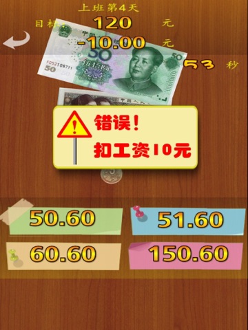 Apple 已更新此 App 以使用最新版 Apple 签名证书。 1.玩法改进,每个工作日数钱有过关条件,引入"试用期",玩家在试用期内达不到要求会被"解雇" 2.财富的累积允许出现"赤字",即玩家的财富值允许为负的,不得不警告玩家:负债情况下游戏会让你举步维艰 3.兼容ipad