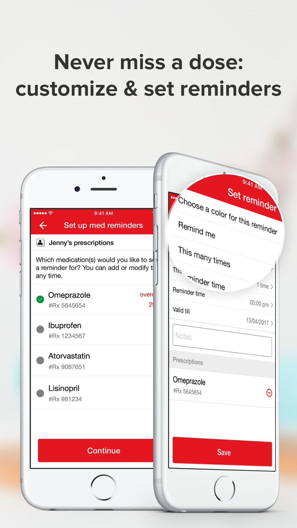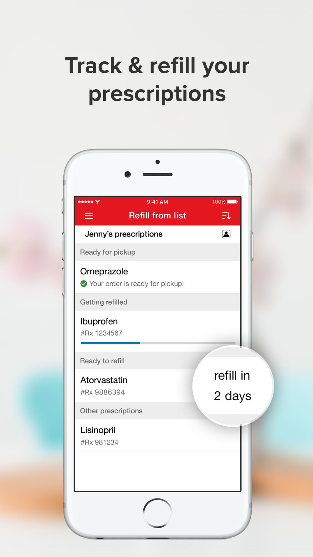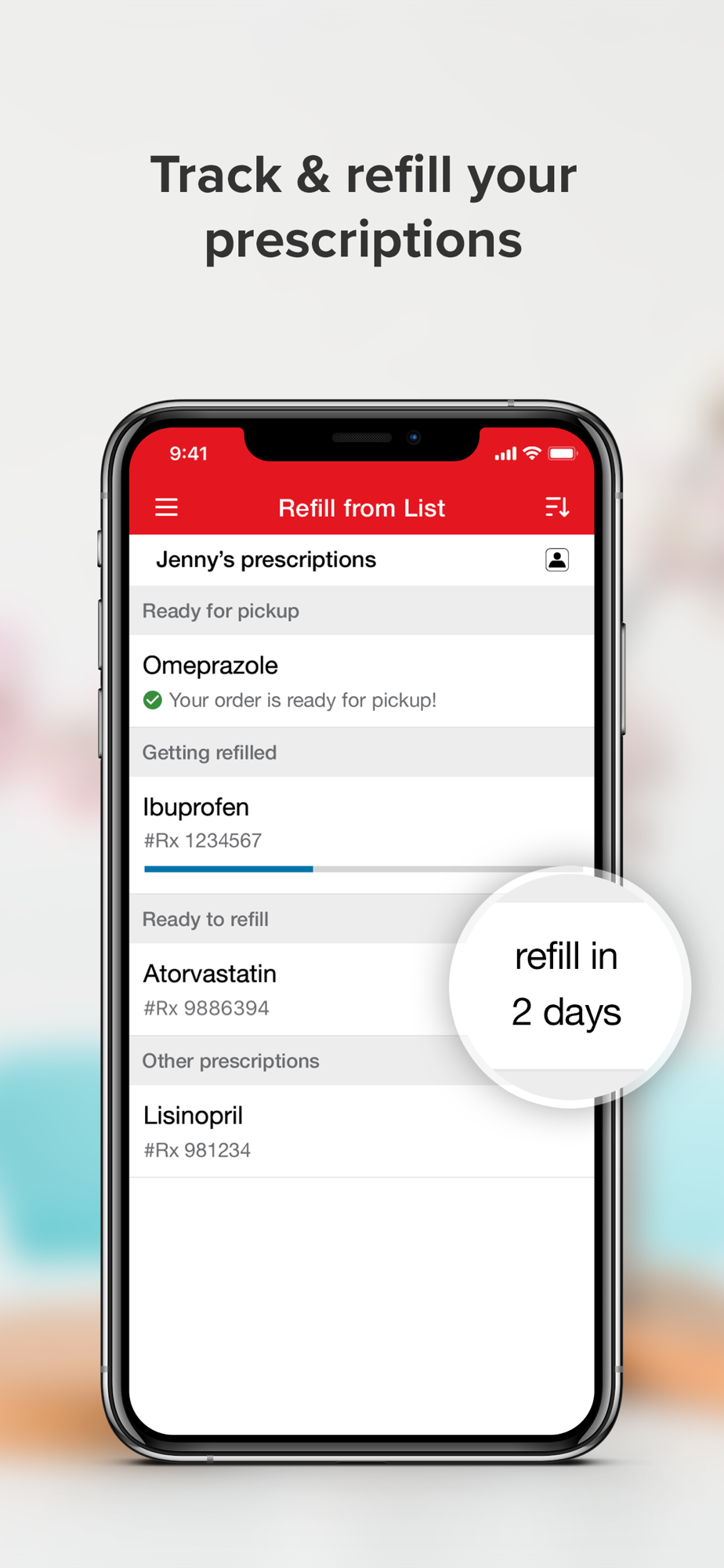 • Notifications — Opt in to receive instant notifications and texts reminding you when prescriptions are due for a refill.