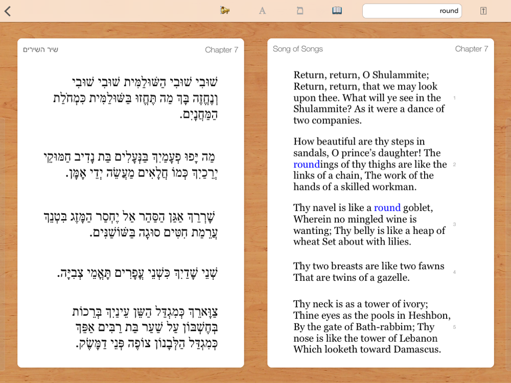 -Toggle English and Hebrew texts and comments - scrollable by chapter.