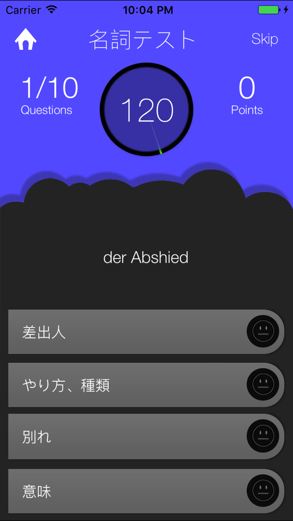 ①まずは「ドイツ語検定クイズ 」アプリを起動してみましょう。