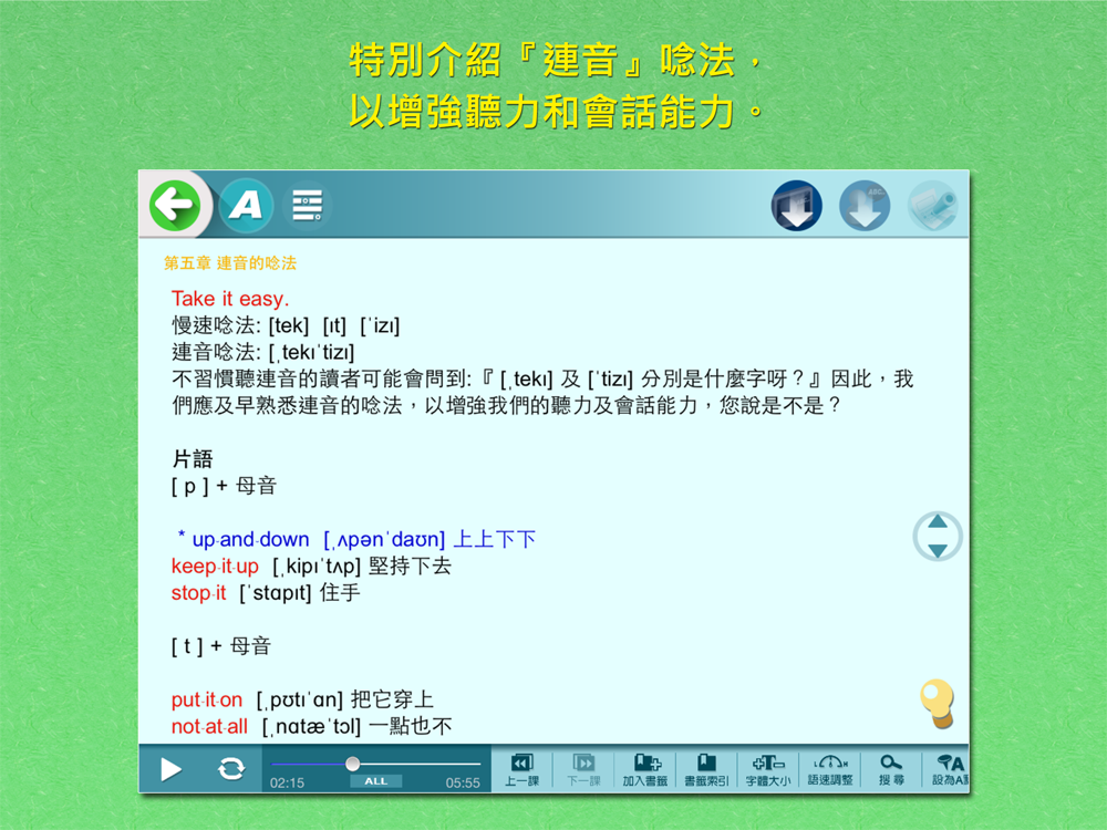 2. 全書使用K.K.音標。解說用字簡單清晰,屏除一切艱澀難懂的解剖學用語或語音學專門術語。