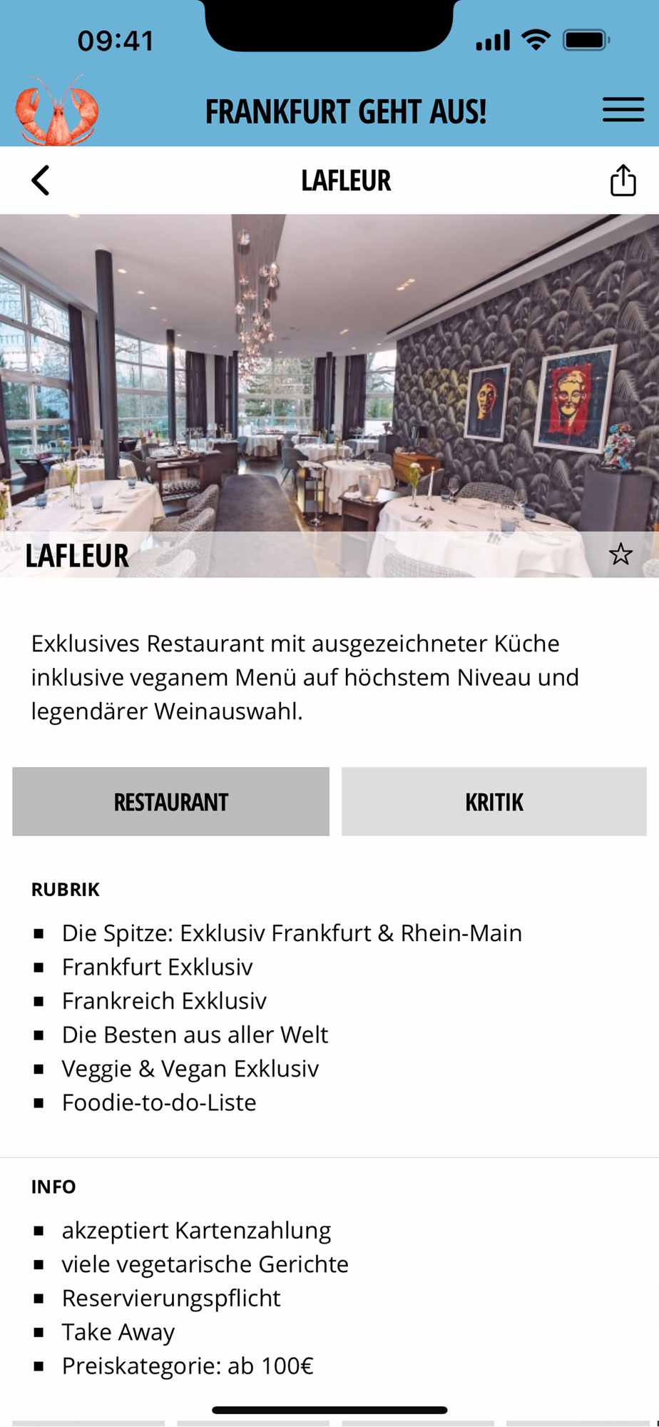 FRANKFURT GEHT AUS! – Der Restaurantführer für Frankfurt und das Rhein-Main-Gebiet jetzt in einer komplett überarbeiteten App!