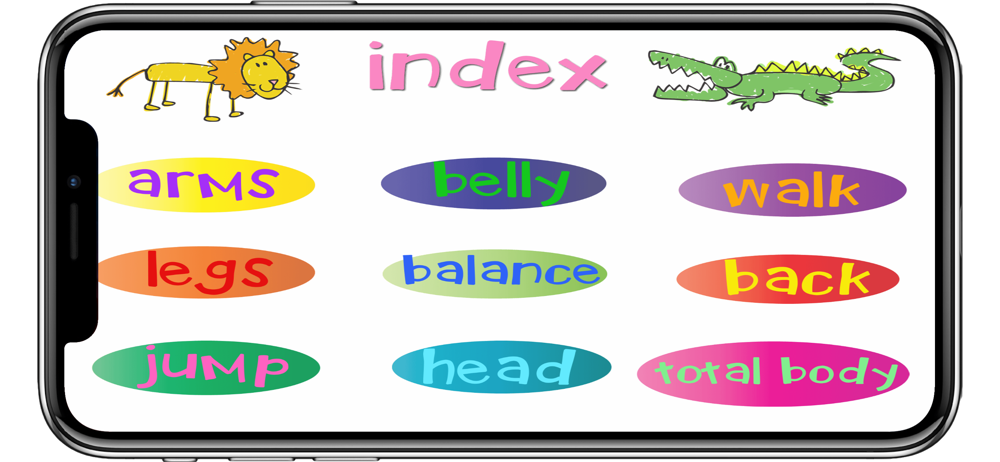 The first of its kind, this app helps develop gross motor strength, balance, and coordination using exercises in flash card form, complete with animations.