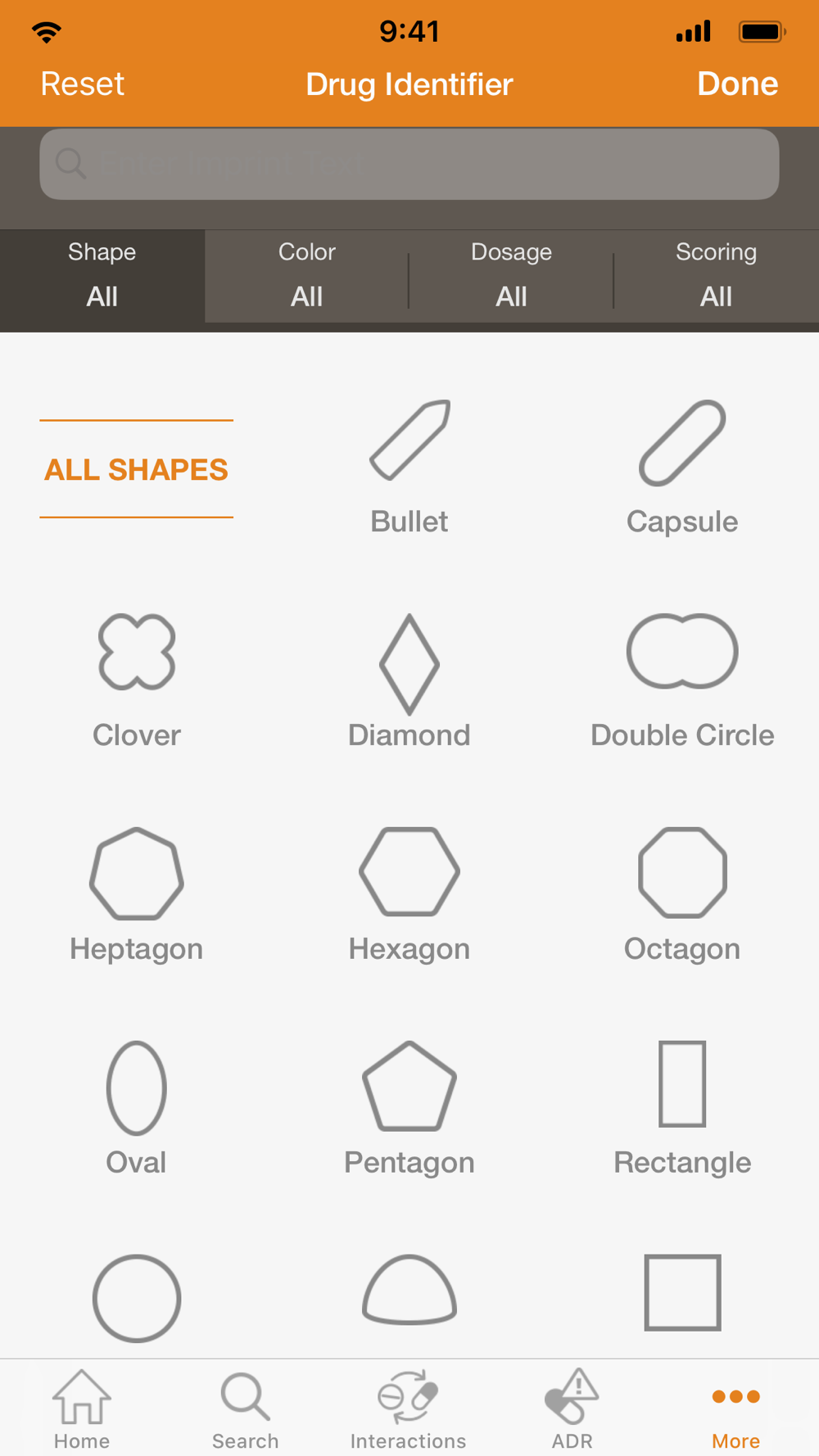 Easily identify pills using the imprint or by physical characteristics such as shape, color, scoring or dosage form. Dynamic imprint matches save you time, with type-ahead surfacing the drug name and thumbnail for immediate verification. Results feature multiple ways to aid visual identification, including full-screen, high-resolution drug images.
