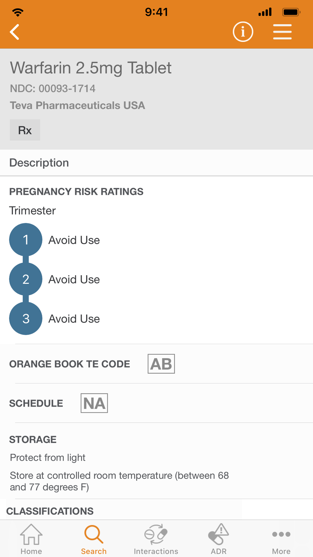• Drug-to-drug interaction report: immediate feedback on interactions as you enter drugs, leading to an easy-to-scan synoptic description of interactions categorized by severity. Unique to Clinical Pharmacology, optionally check for interactions between drugs and other life-style factors such as diet, smoking, alcohol consumption and more. Tap through the synopsis to see a detailed description of the interaction, which can be toggled between a professional and consumer view to share and consult with patients.