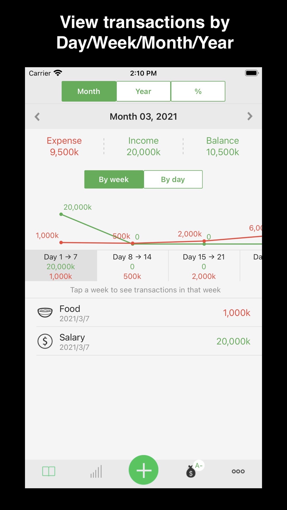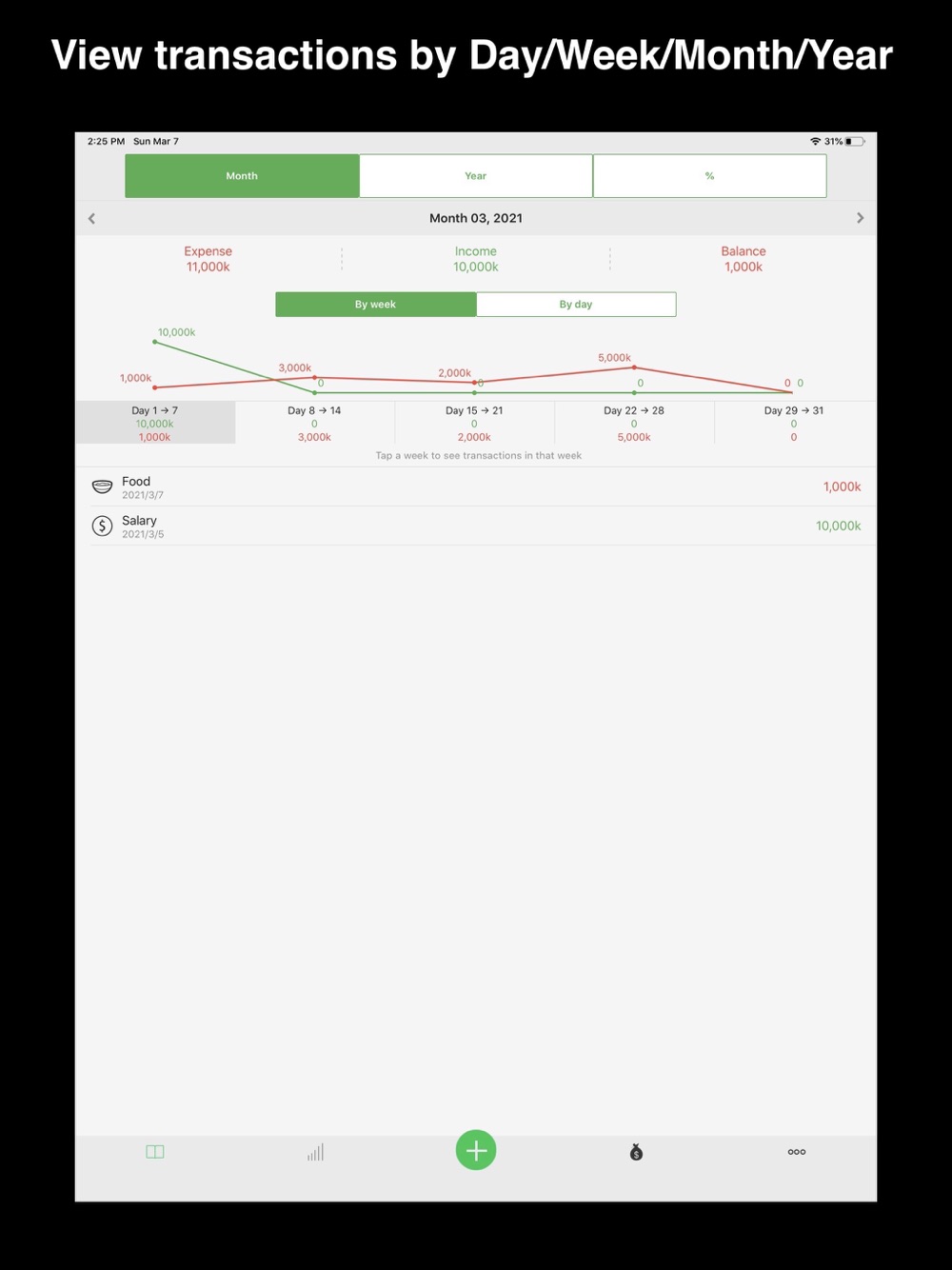 + There are only 4 main screens but it is able to manage your expense, income, loan, debt, saving, budget, tontine, reports.