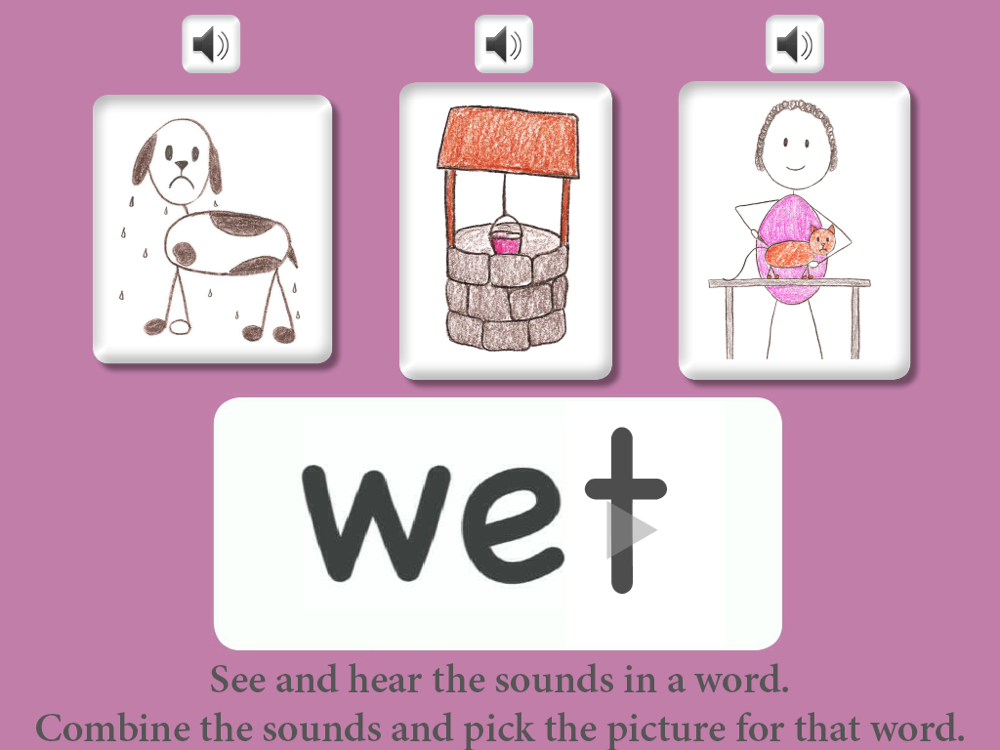 In order to read new words, children need to 1) see letters 2) think sounds and 3) blend those sounds together. This app breaks up those tasks so young children can practice the last one, blending sounds together, even if they don’t yet know the sounds of letters. This app allows four and five year olds to be successful at this foundational skill and ensures they start out using the correct part of their brain to avoid dyslexia. Children hear the separated sounds of simple three-letter words as the letters appear. Then they choose the picture that represents that word. Correct answers get an encouraging sound or a funny video, and wrong answers teach. Meanwhile, they are absorbing letter-sound relationships, developing phonemic awareness, and learning how to segment sounds into words--the key to spelling success! We start with the easiest type of words to blend and progress to more difficult words after lots of practice.