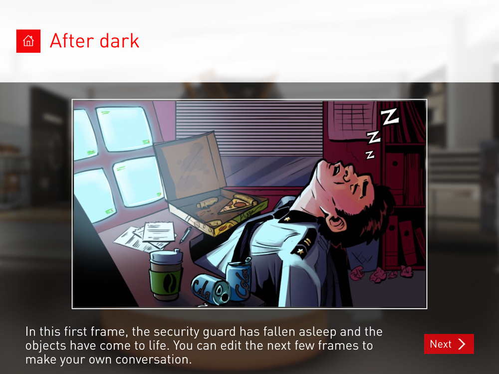 ● After dark – what if the objects came to life after the Museum closes? Imagine conversations between the objects by filling in the blanks in a comic strip.