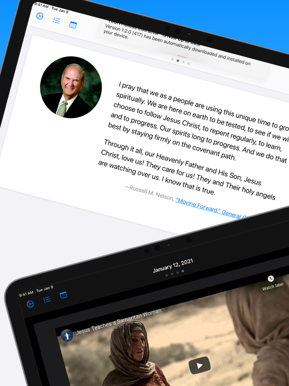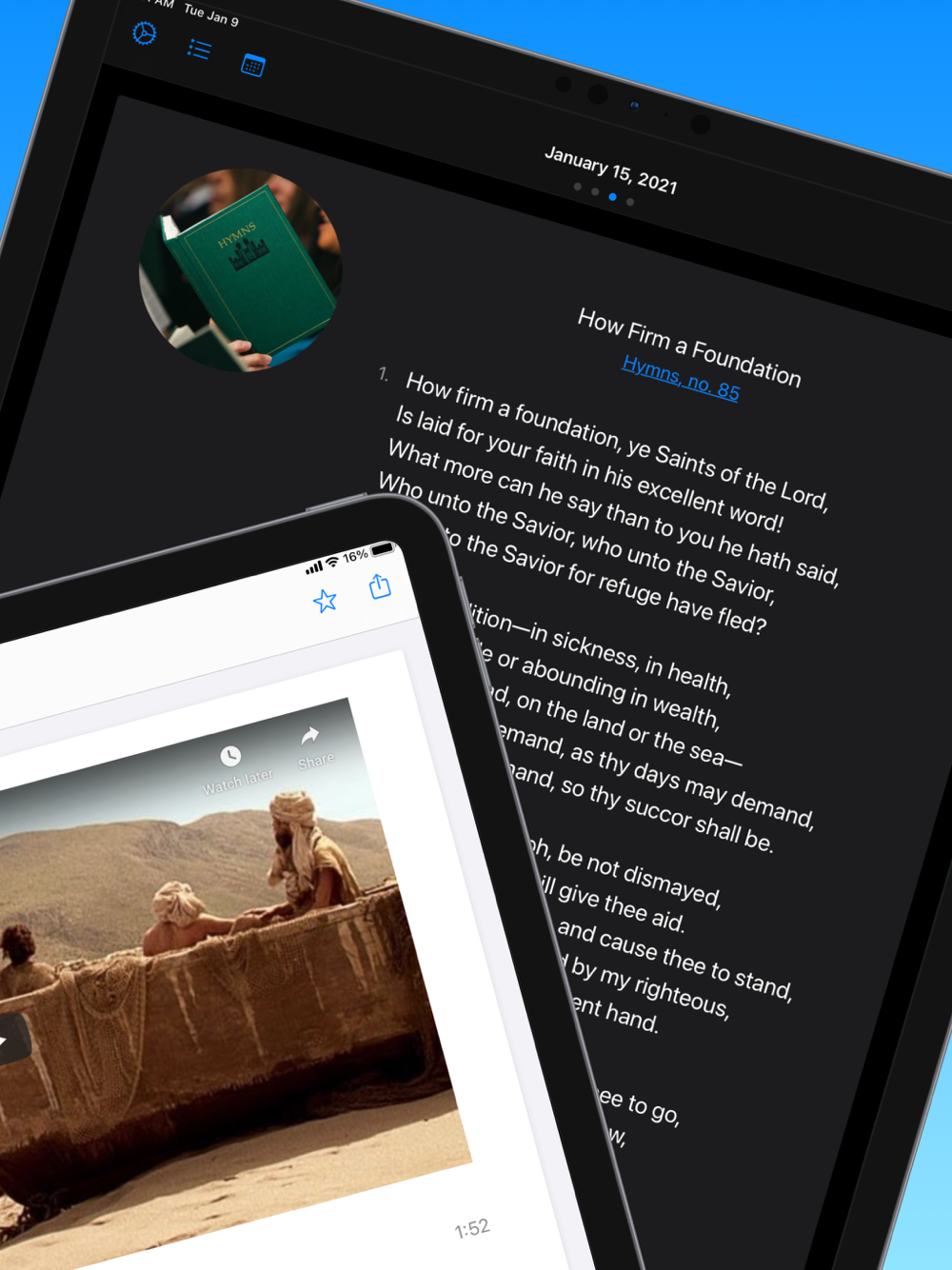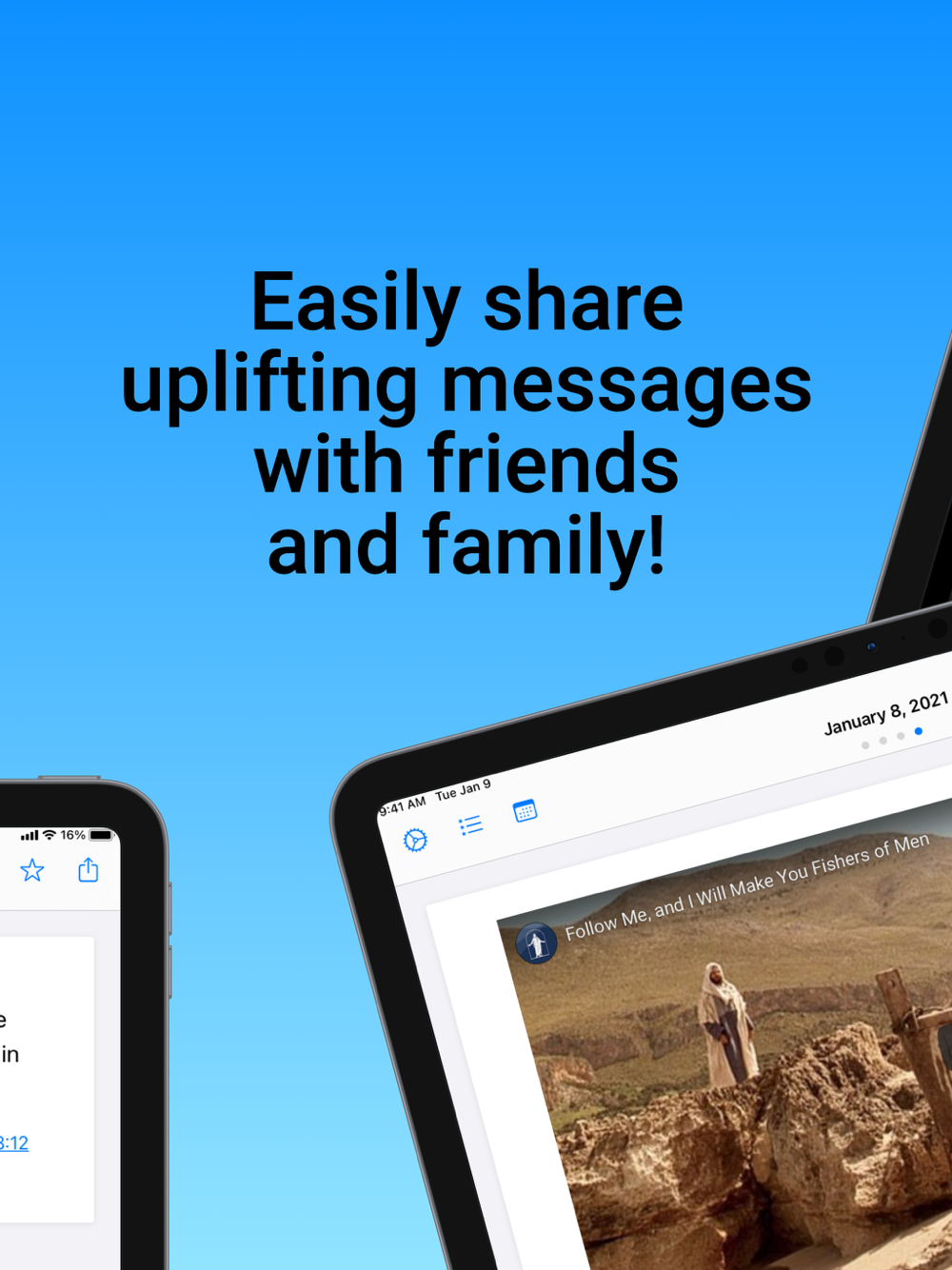 Be empowered every day with an inspiring scripture, thought-provoking conference quote, sacred hymn or children's song, and motivating video. Easily share these uplifting messages with your friends and keep track of your favorites for later!