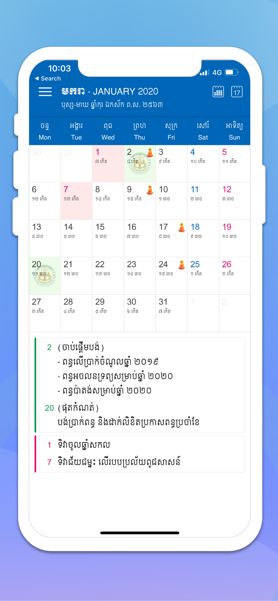 It is also including the Cambodia public holidays and Buddhist days.
