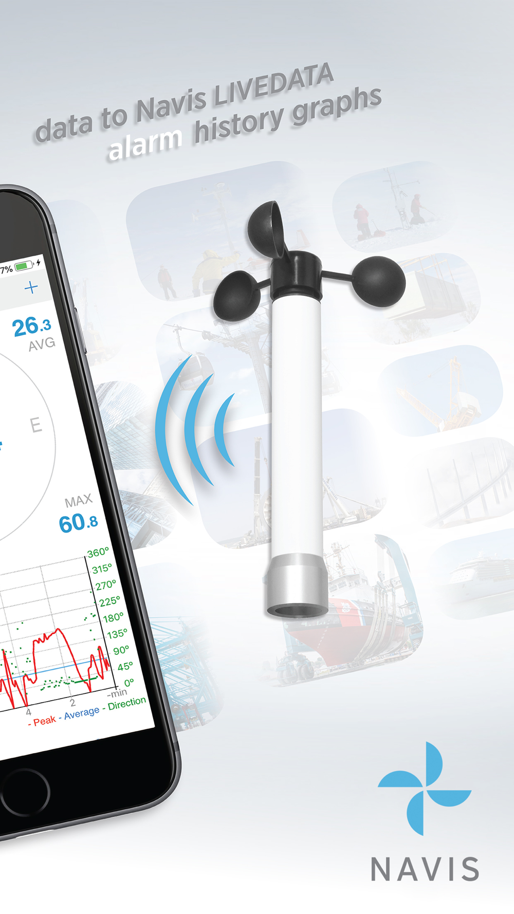 Windy Anemometer use external Navis wireless sensors to measure wind speed, direction and air temperature.