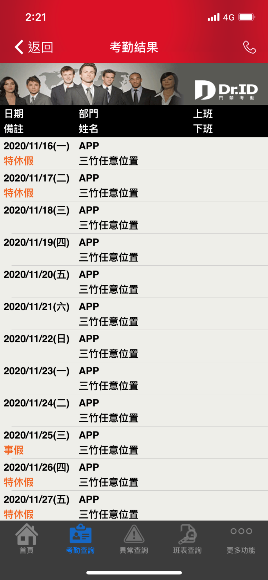 Dr.ID 提供查詢SIGMU集團中興保全所開發之雲端門禁考勤系統相關資訊,讓您不必再拘限於傳統電腦設備,可於行動裝置上做最即時的查詢,從E化延伸到M化隨時可掌握人員最新的出入考勤資訊及相關設備連動即時訊息。