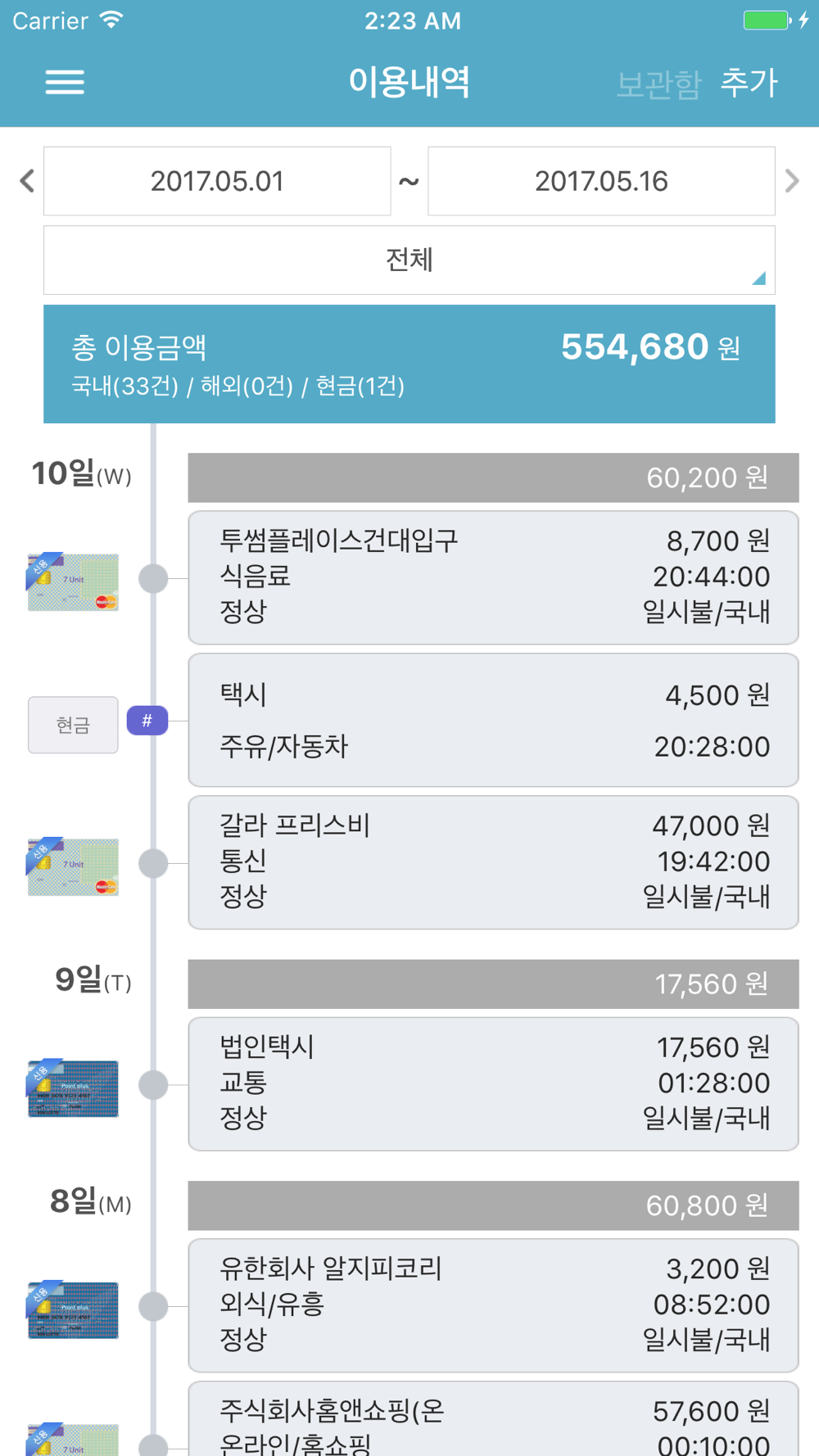 2. 주승리 - 사용법도 완전 편하고 좋네요 카드별 사용금액 기간별 합계를 알수 있어서 너무 좋아요^^