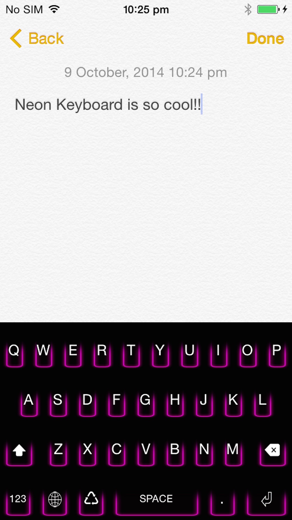 No more boring looking keyboards. Install the new neon keyboard and you will get Neon themes blue, pink, green, yellow and red.
