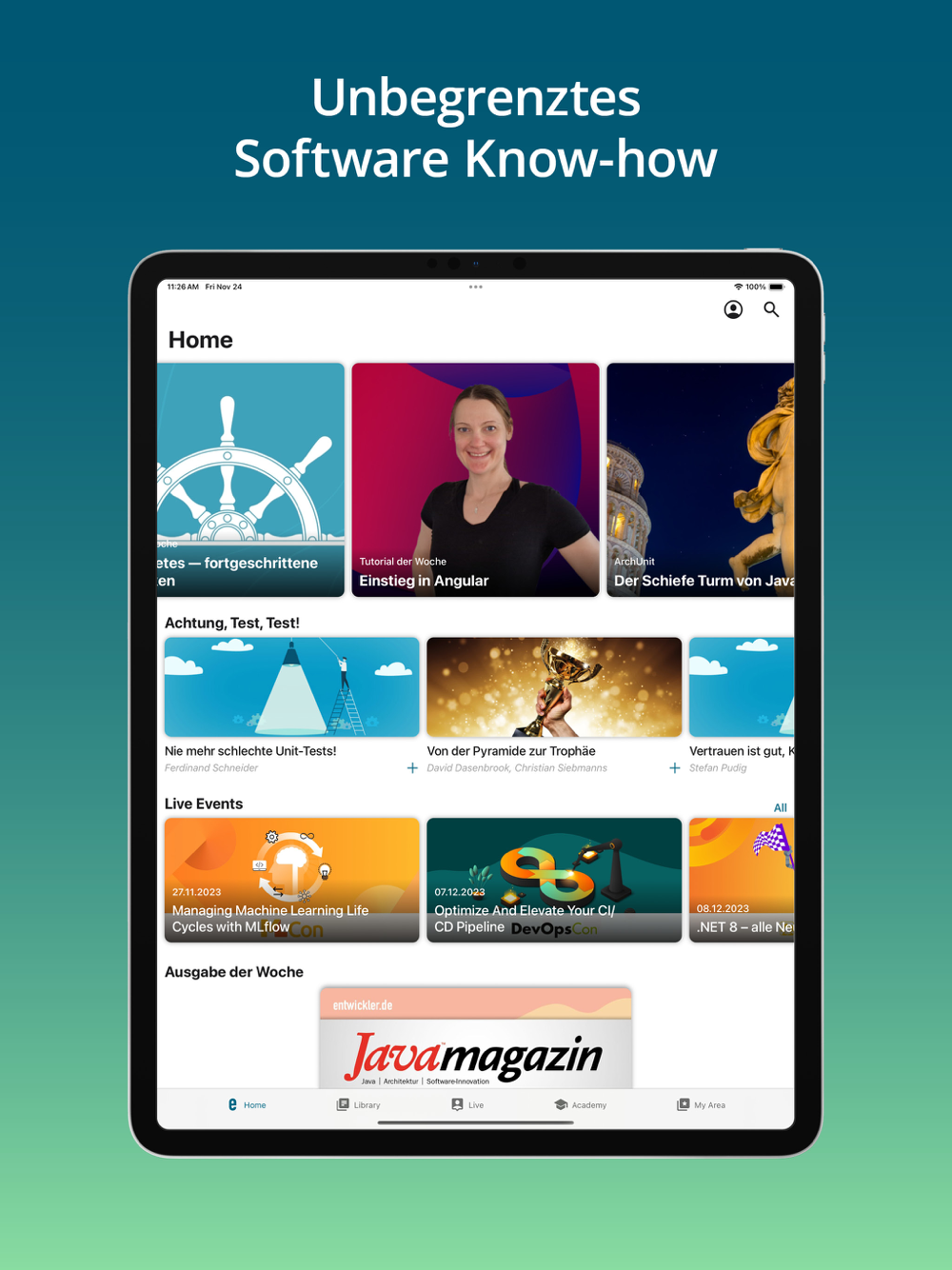 Die definitive Wissensplattform für Software-Professionals. Wir bieten dir unbegrenzten Zugriff auf Expertenwissen mit Live-Events, Video-Tutorials und über 10.000 Fachartikeln.
