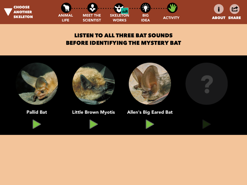 The mobile app that brings skeletons to life at the Smithsonian’s Natural History Museum in Washington, DC now creates the same 3-D experience at home or in the classroom. The app has a special way to ‘see’ skeletons on display in the Bone Hall, or printed on paper and on a monitor. Astonishing things happen in 3-D and the audio is as wild as the places the animals come from. Use the app from wherever you are to peer into the inner lives of animals like bats, giant sea cows, rattlesnakes and more. Meet the people who study them, ponder big ideas about the natural world and play a game or two.