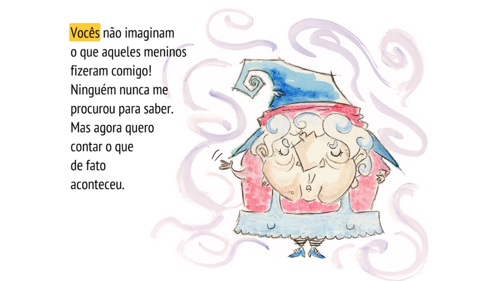 Livro infantil, com narração, que estimula a leitura e a criatividade.