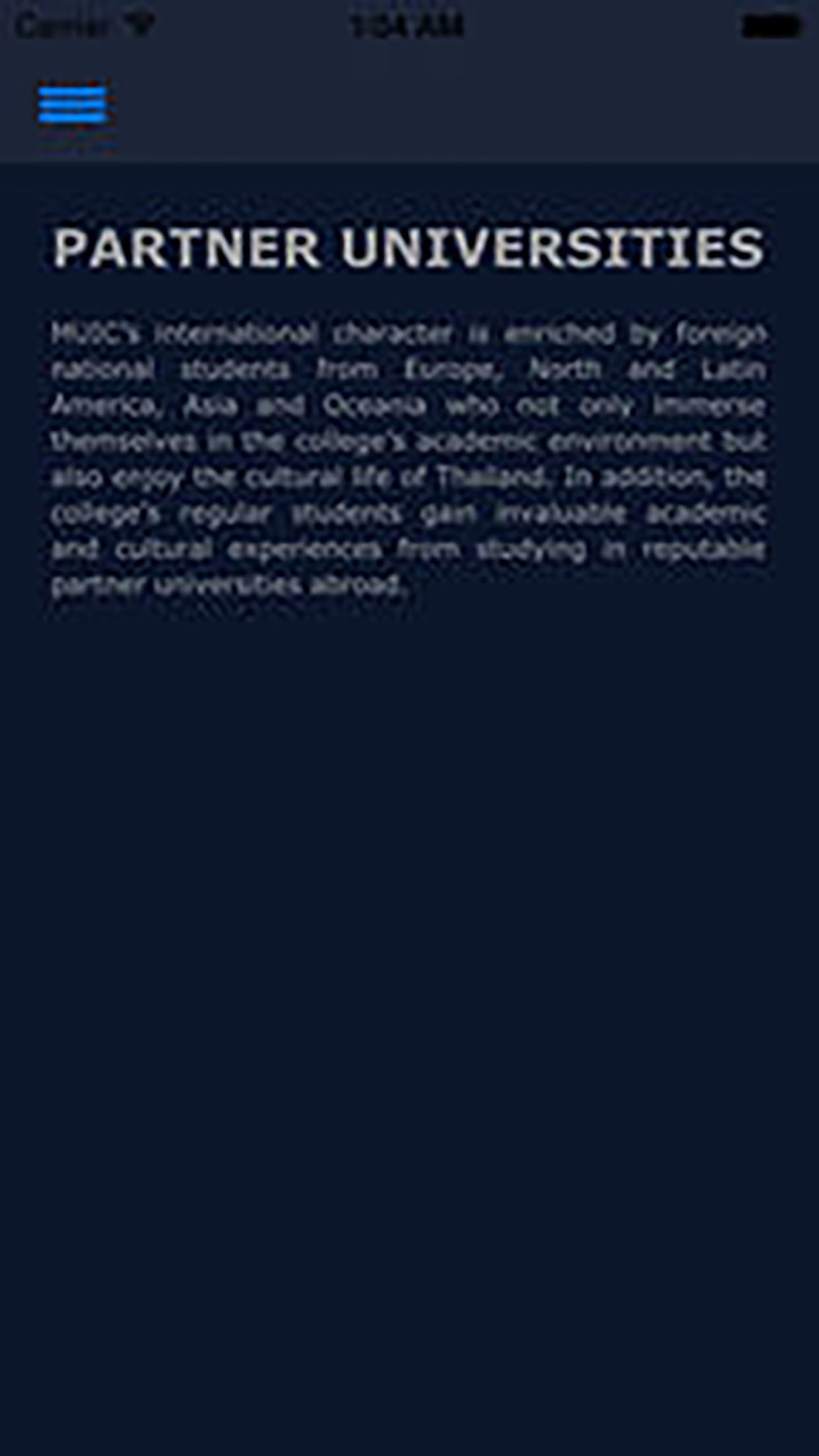 Welcome to MUIC App. V.2! For your convenience, Mahidol University International College (MUIC) Is a communication channel that provides MUIC news, general knowledge, students’ achievements, activities and all the changes happening within the College to people who are interested to know more about MUIC via mobile devices.
