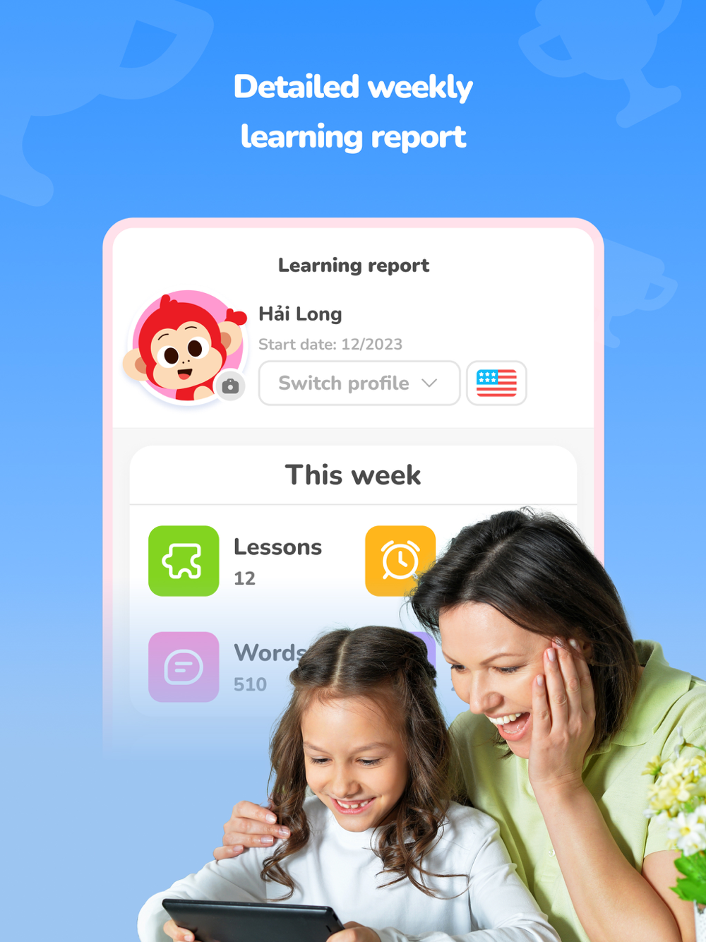 - Use exclusive M-Speak AI technology to evaluate and give detailed feedback on children's pronunciation