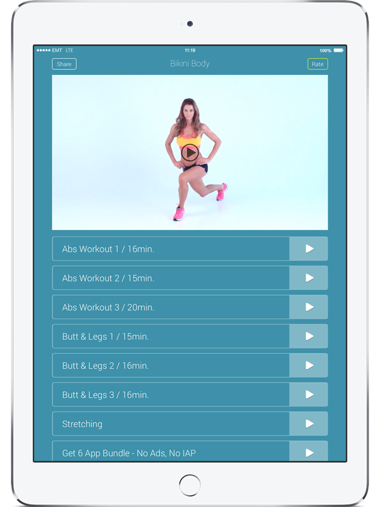 • With these Bikini Body workouts you can train your abs, butt and legs, whenever you want and wherever you want. Quick and easy to train and you don’t have to use any gym equipment.