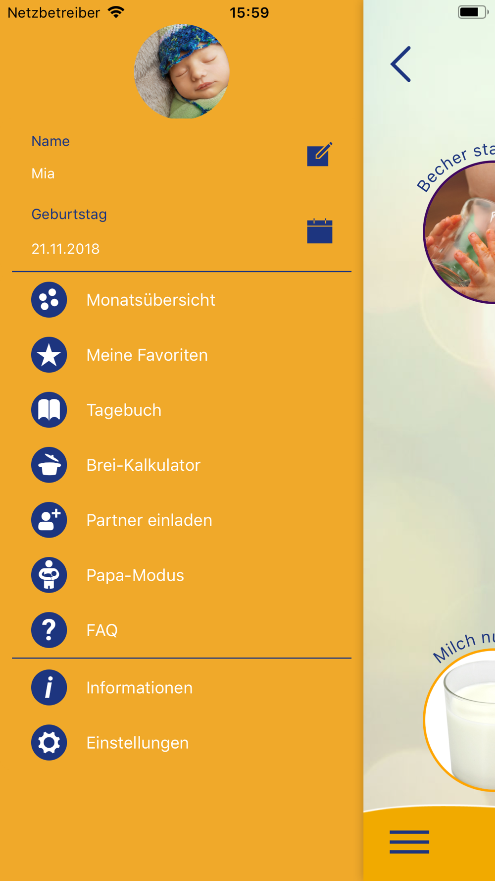 Die App ist dein interaktiver Begleiter durch das aufregende 1. Jahr mit Baby. Sie stammt vom Netzwerk Gesund ins Leben, einer IN FORM-Initiative der Bundesregierung.