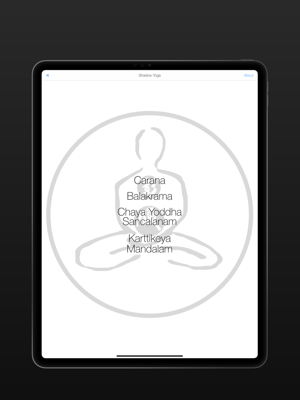 The Shadow Yoga app is an aid designed to help in learning the Shadow Yoga Preludes. The app contains animations of the Caranas and all three Preludes. Instructions are also included that will support the student’s understanding of the practice. This app is intended to complement direct instruction from one of the teachers qualified to teach this subject listed on the Shadow yoga website.