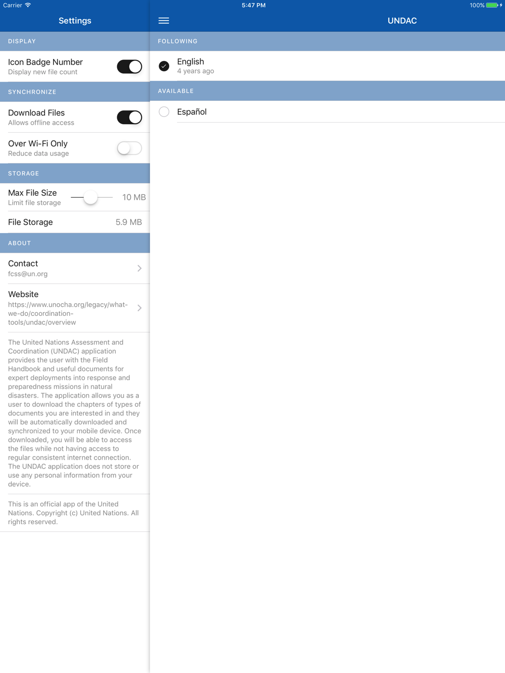 The United Nations Assessment and Coordination (UNDAC) application provides the user with the Field Handbook and useful documents for expert deployments into response and preparedness missions in natural disasters.
