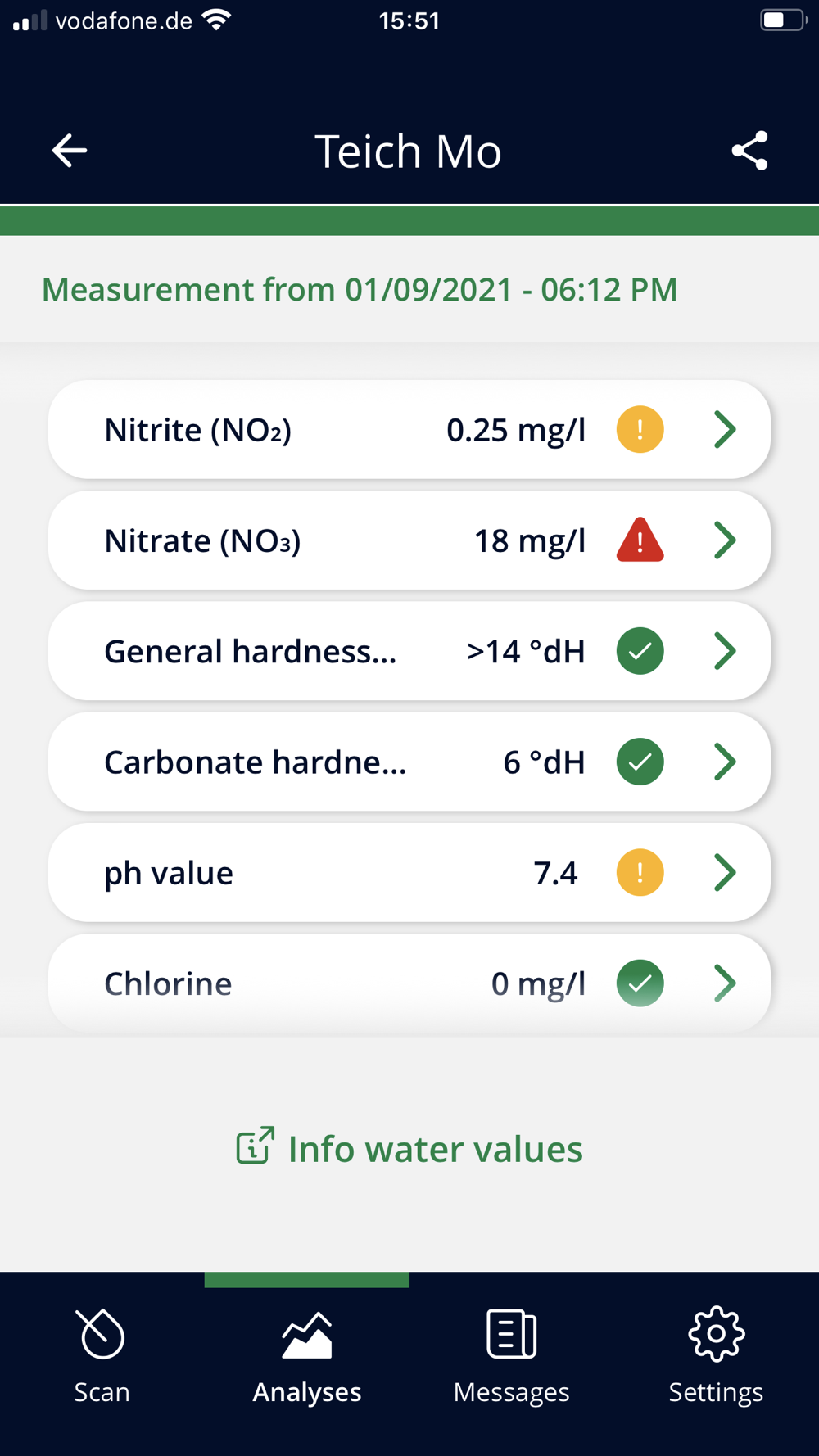 • With detailed evaluations of the individual water parameters incl. background - knowledge and recommendations for action in the app