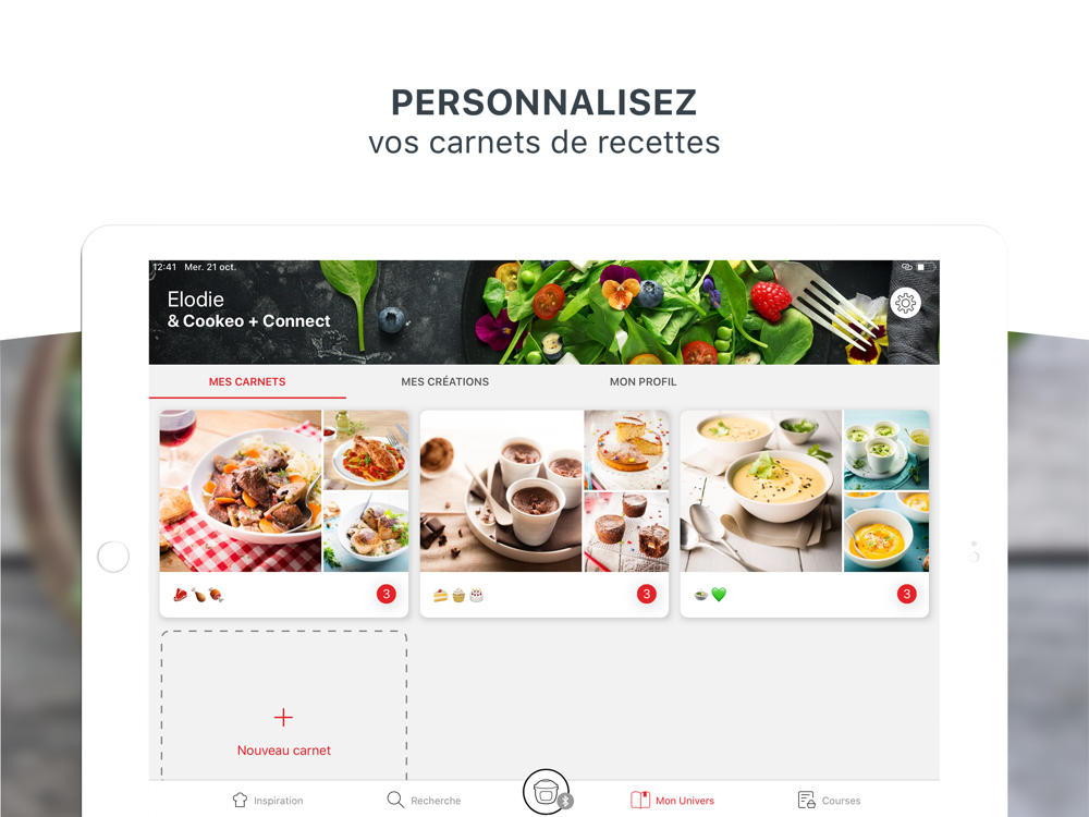 - Accédez à l'univers de recettes Cookeo : plus de 500 recettes Cookeo développées par nos chefs.