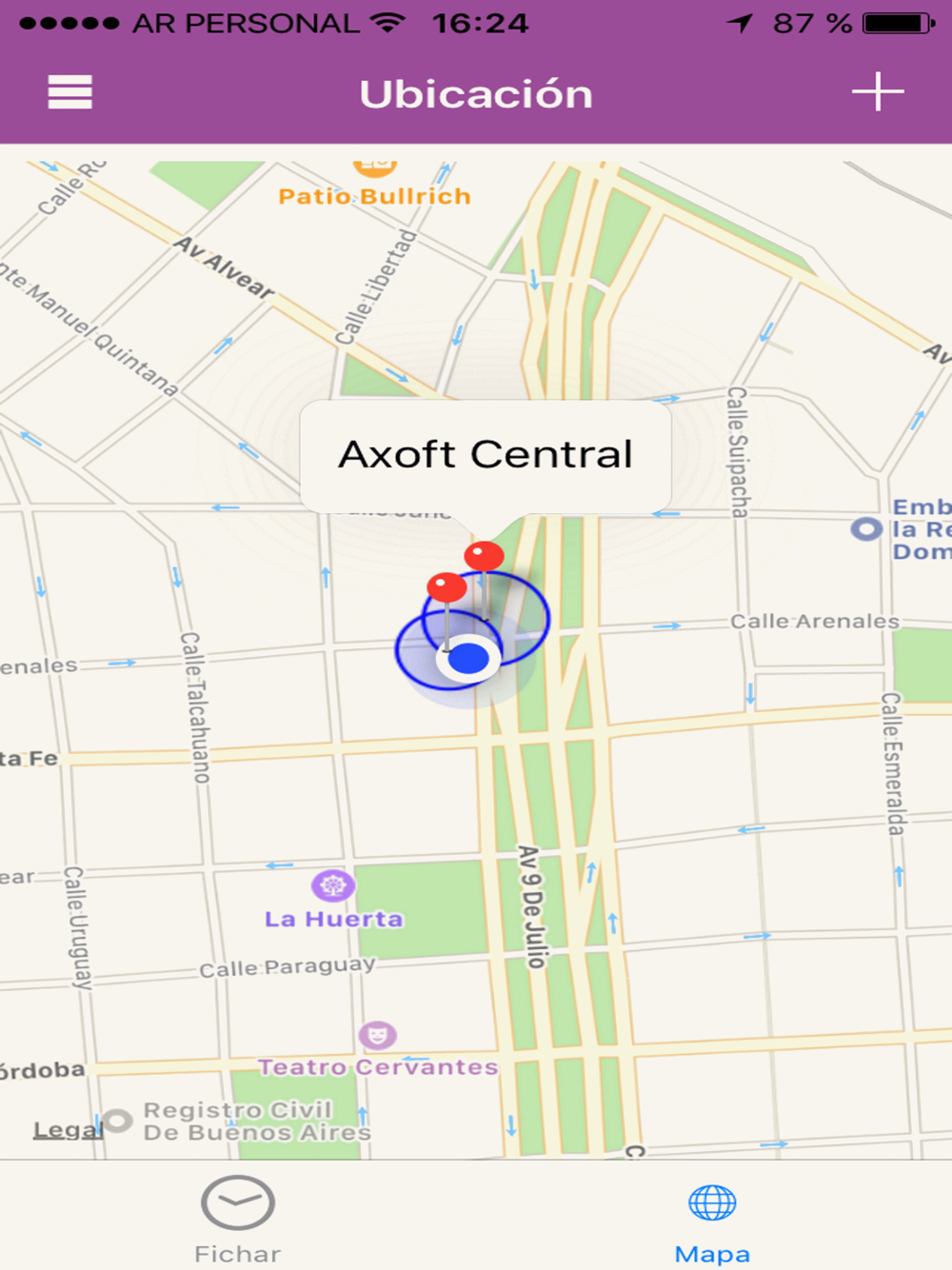 Con Tango Fichadas registrar tu horario trabajado es tan sencillo como pulsar un botón. Aprovechando las tecnologías GPS y Wi Fi, fichá de manera mucho más ágil a través de un sistema de sugerencias por proximidad. Podrás observar en el mapa tu posición y las ubicaciones cercanas disponibles para fichar.