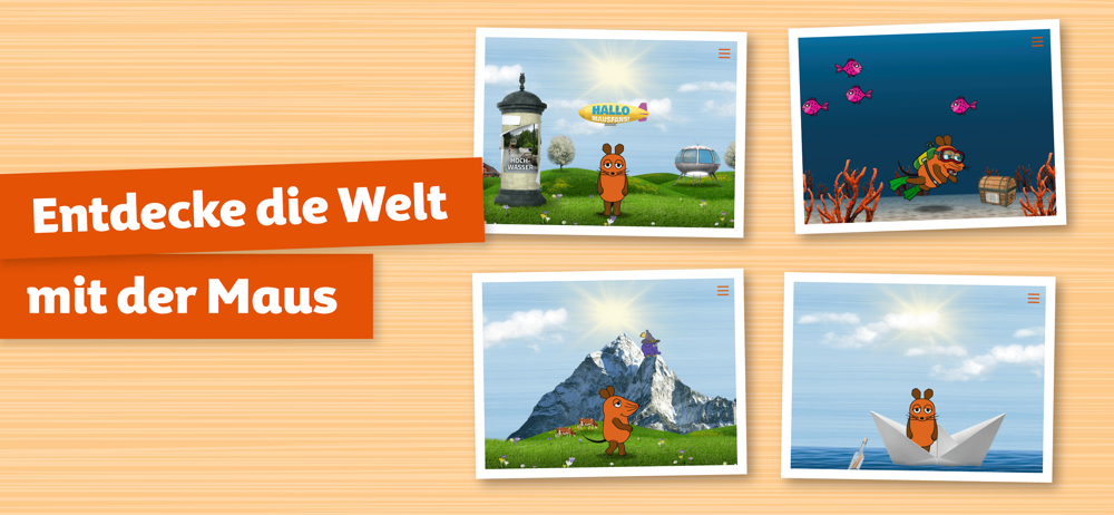 Begleite die Maus durch ihre Welt und entdecke immer wieder Neues, indem du mit deinem Finger drauftippst. Finde Fledermäuse, mache im Tunnel Licht, staune über einen „behüteten“ Leuchtturm, lass Vögel fliegen oder blase Kugelfische auf. Ob über oder unter Wasser, am Strand, auf dem Skateboard oder in den Bergen, mit deinem Finger kannst du selbst bestimmen, wie schnell die Maus durch die MausWelt läuft. Wenn du sie berührst, wird sie außerdem hüpfen, Handstand machen, schnüffeln und mit anderen Aktionen überraschen. In den unterschiedlichen Bereichen der MausWelt findest du alle Inhalte der MausApp.