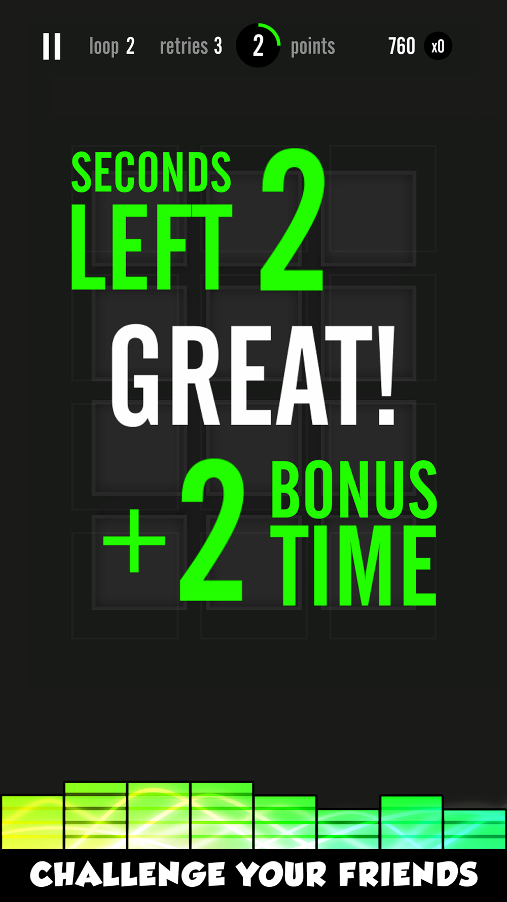 The game is played on a grid of twelve cubes. Each cube will light up and rotate when it’s time to be tapped. Earn points and extra time with a well-timed hit, but be careful, off-beat taps will hurt your score! Every song is made up of a series of loops, and the final loop is endless. Play each loop well to complete a song at 100% (or even higher) to get the best score possible. Pass each level to unlock all of the music tracks!