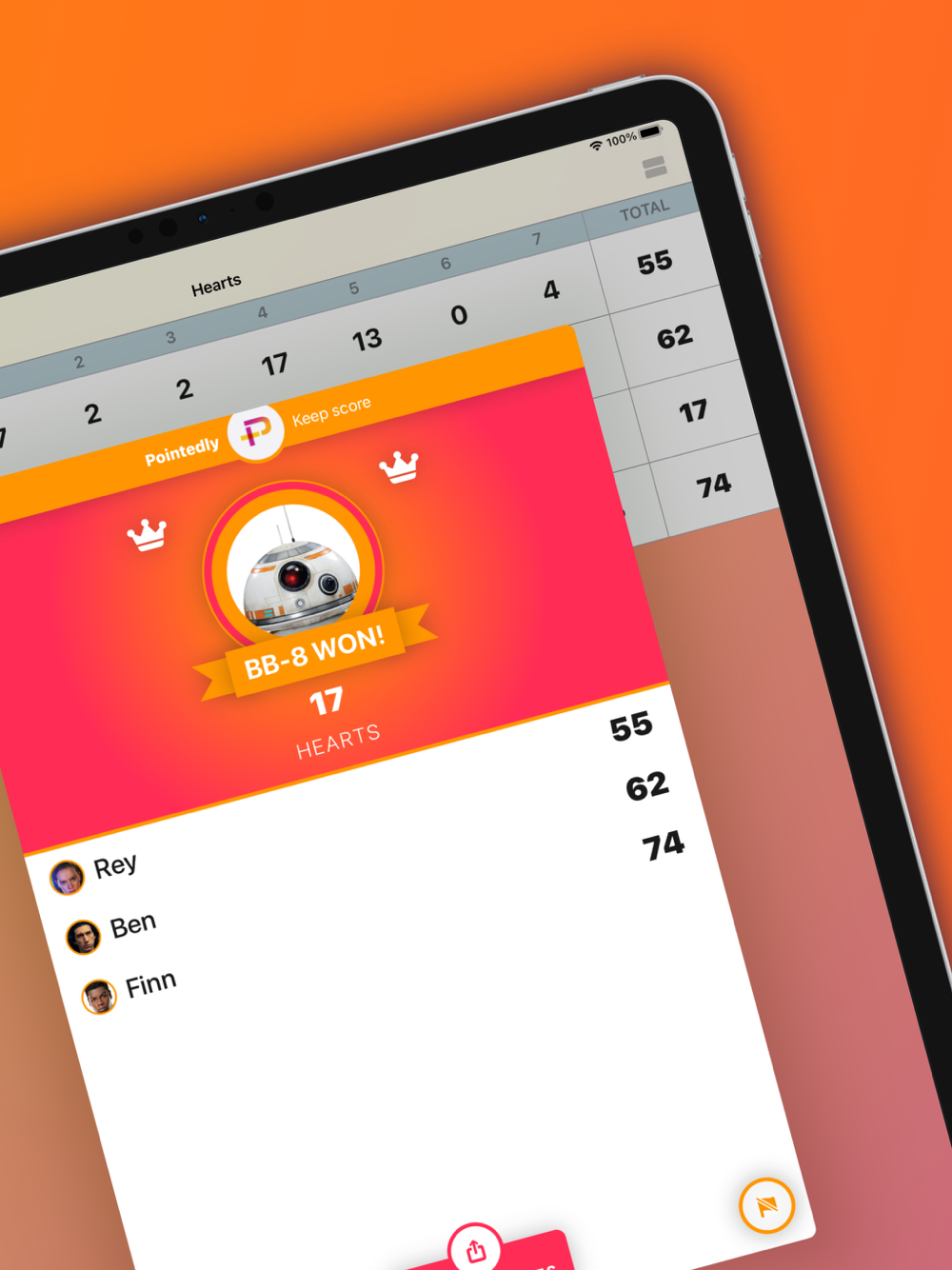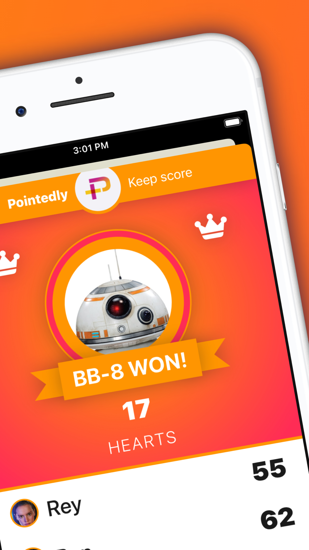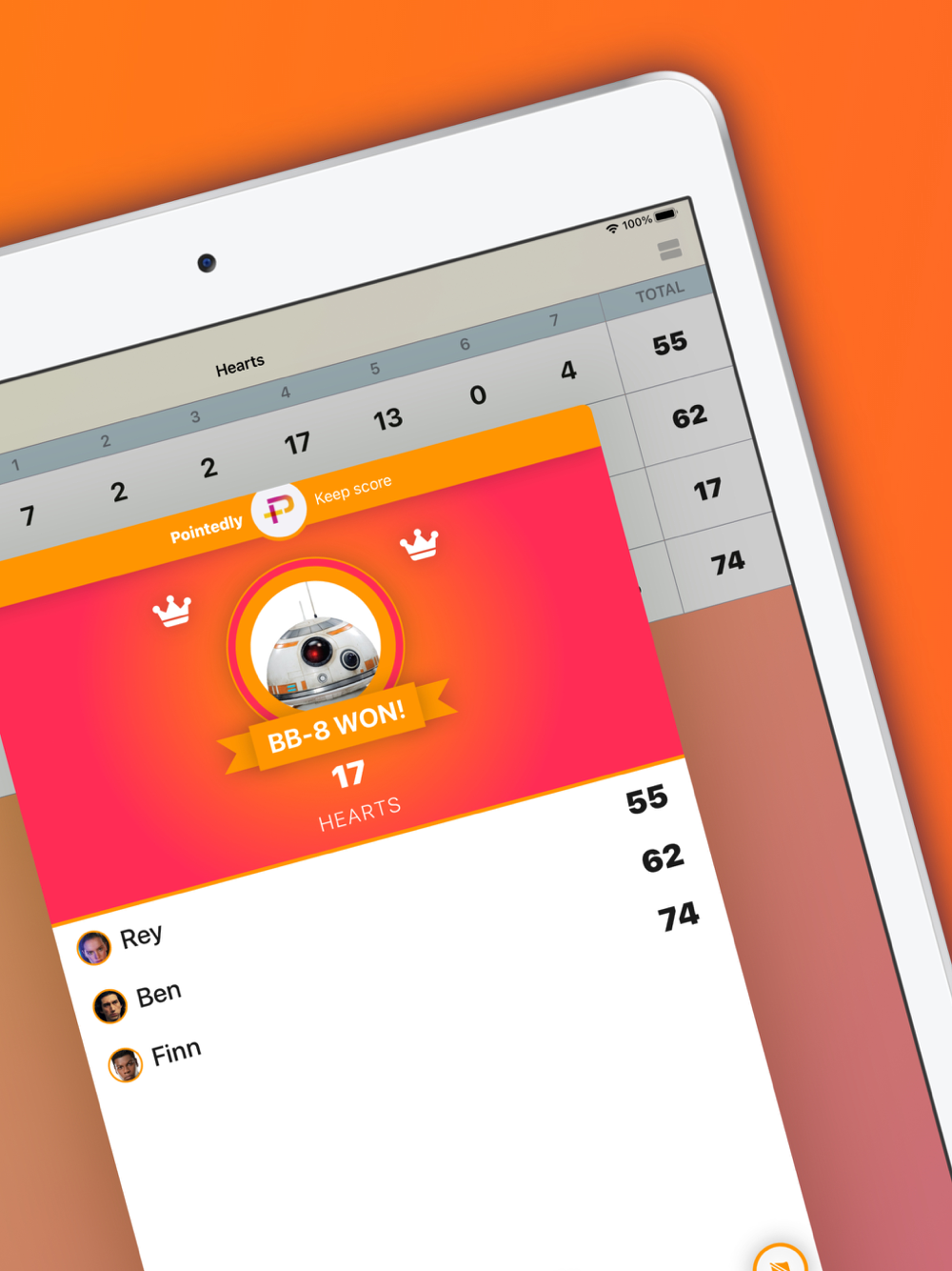 Pointedly is the simple, beautiful way to track and save points for multiple games. No more fumbling around for a pen and paper—just grab your phone, pull in friends from your contacts or snag photos and get started! Completely free with no ads.