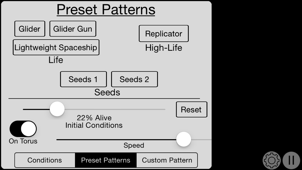 You can also insert a custom pattern to see how it evolves over time! Explore different initial conditions and and discover beautiful patterns and surprising results.
