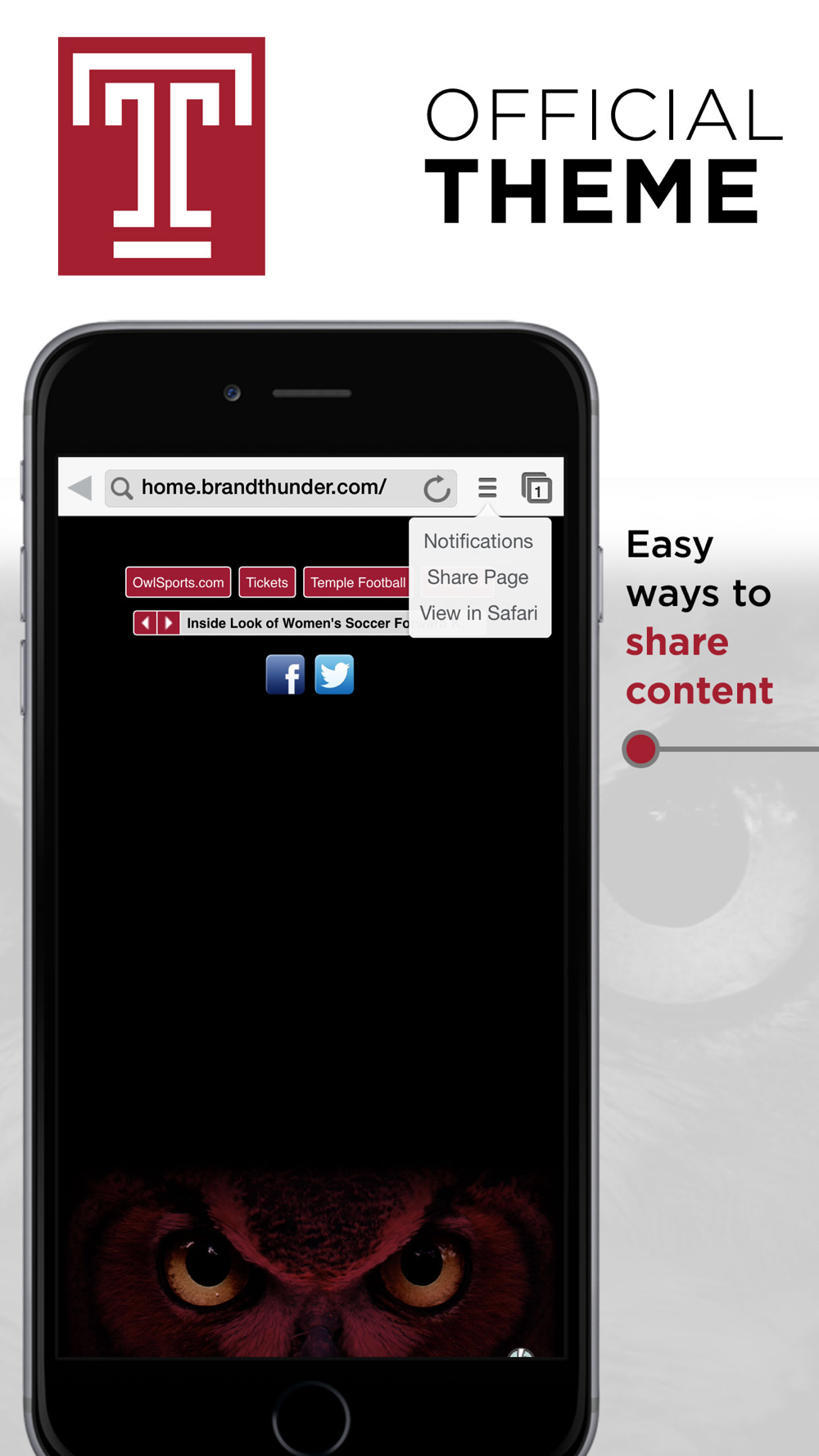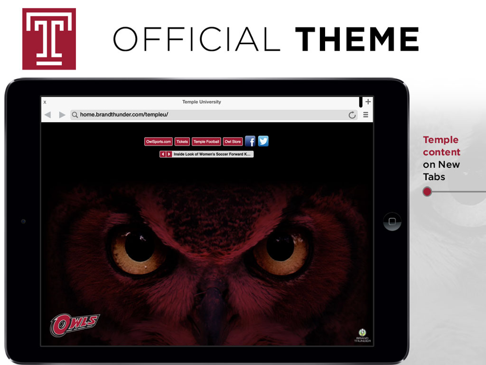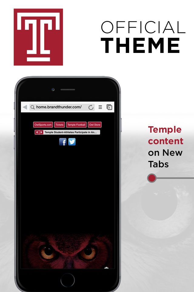 The Temple Owls Web browser is the only officially licensed full-fledged mobile browser for The Owls fan. Enjoy dynamic browsing tabs, a start page with Temple Owls news and content all while staying secure end-to-end so your data is always safe.
