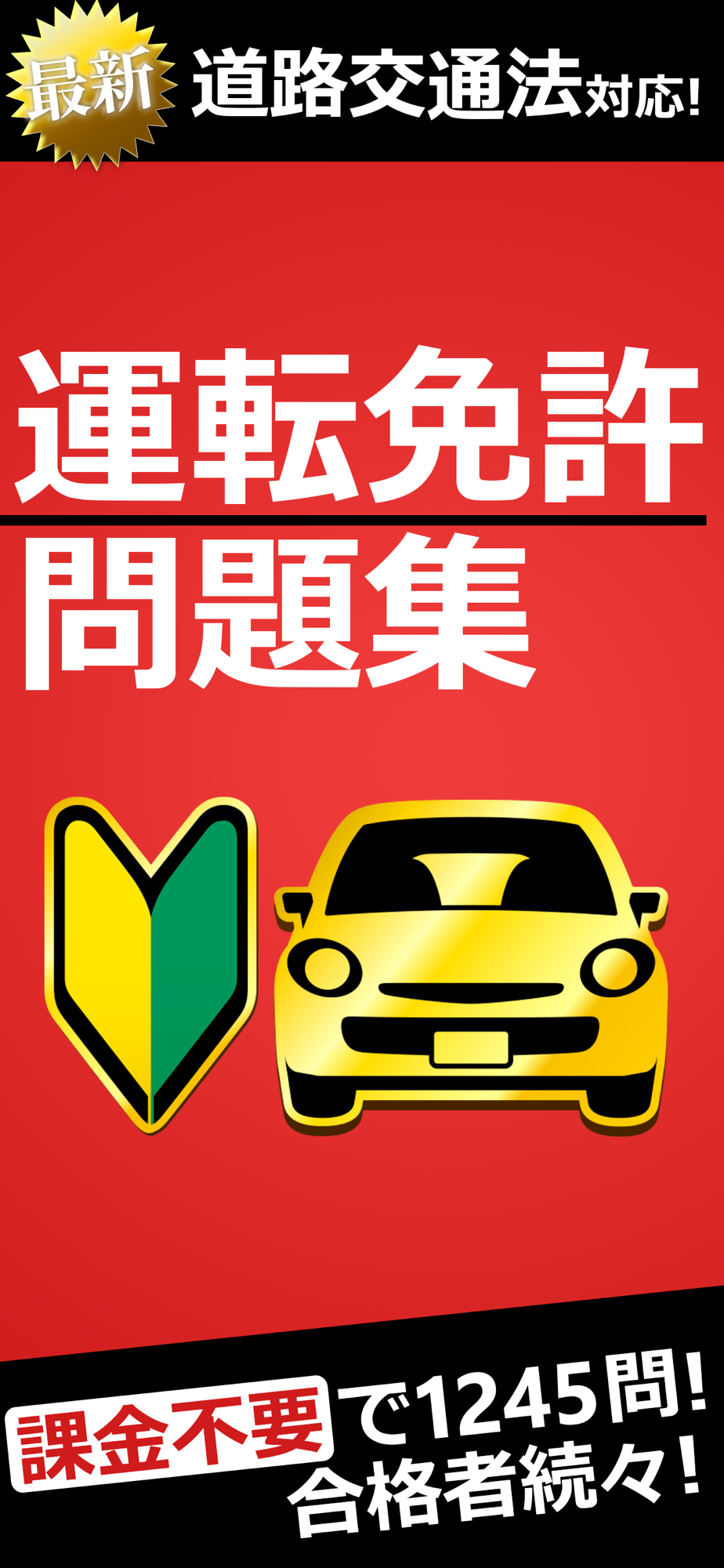 普通自動車運転免許、究極の学科対策アプリ!このアプリで合格者続々!完全無料で1245問題!