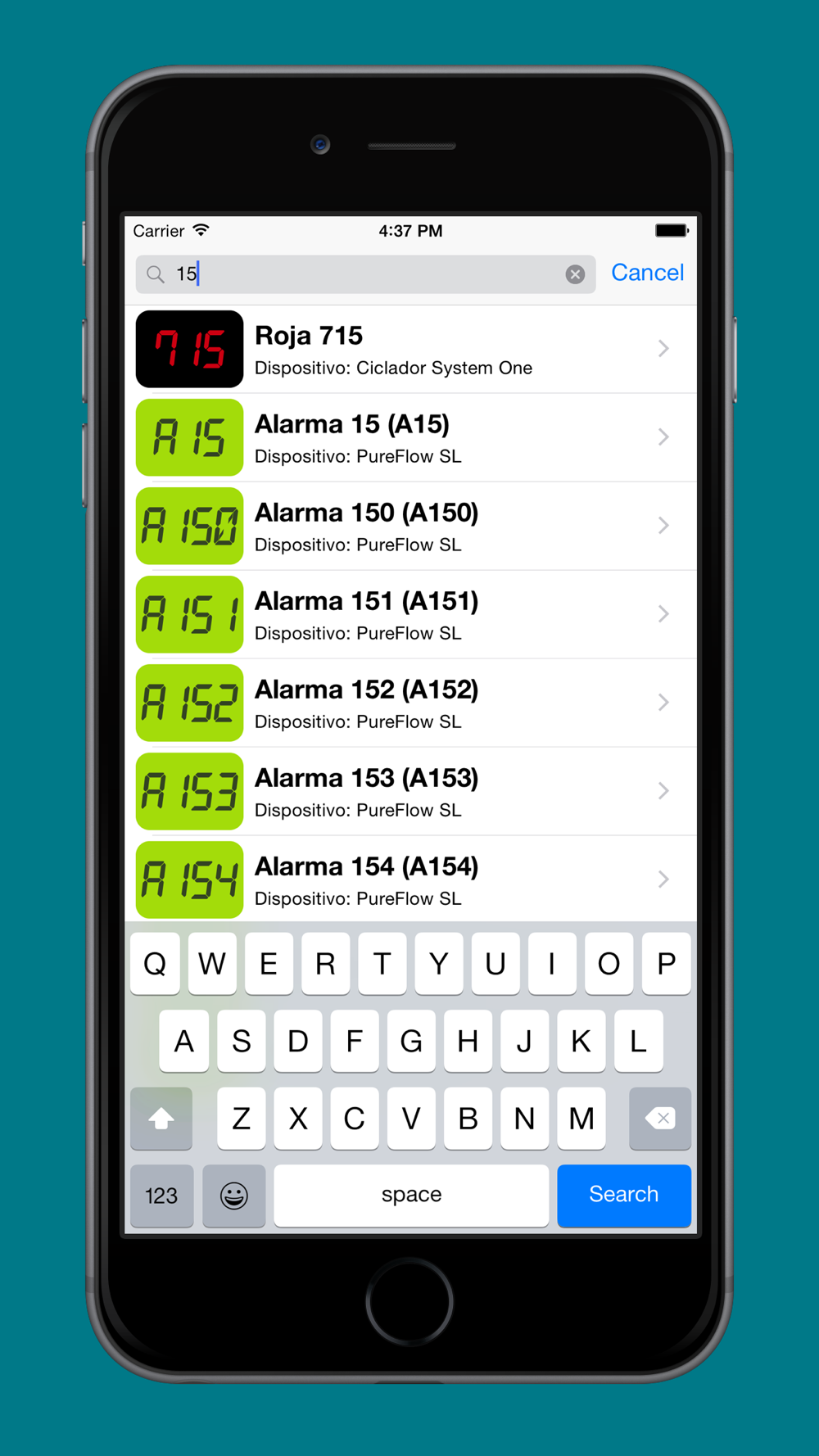 Funcionamiento: Localizar el código de alarma y pulsar sobre la misma para identificar su causa y posibles medidas correctoras.