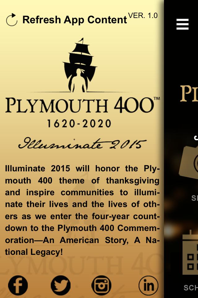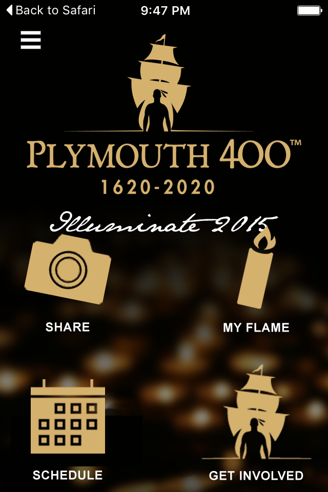 Plymouth 400, the organization planning the 400th anniversary of the founding of Plymouth Colony, invites you to join us as we, together with partners around the world, Illuminate Thanksgiving. This global event honors the words of an American forefather, Governor William Bradford; "For as one small candle may light a thousand, so the light ehre kindled hath shone unto many."