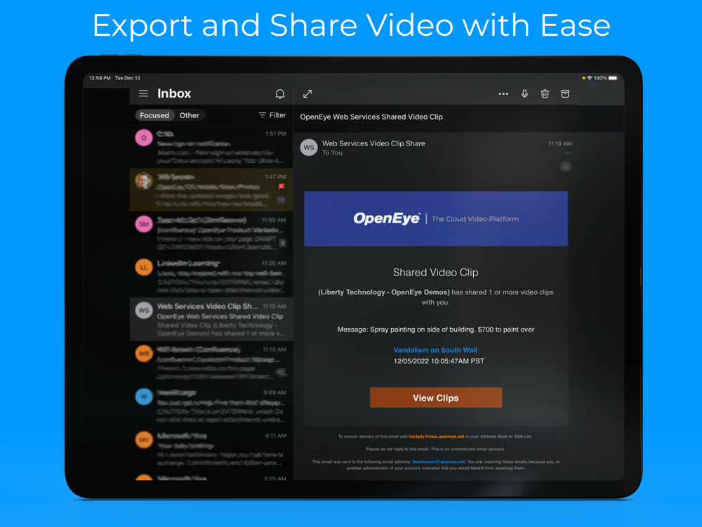 Access HD video from your OpenEye Apex Server software with the new OpenEye Mobile app, powered by OpenEye Web Services. OWS and Web Connect automatically eliminate the need to load recorders and connection settings. Now you can manage permissions for hundreds of users with ease, streamline the process of accessing recorders and settings, and use new tools to reduce the overhead of managing your video system.