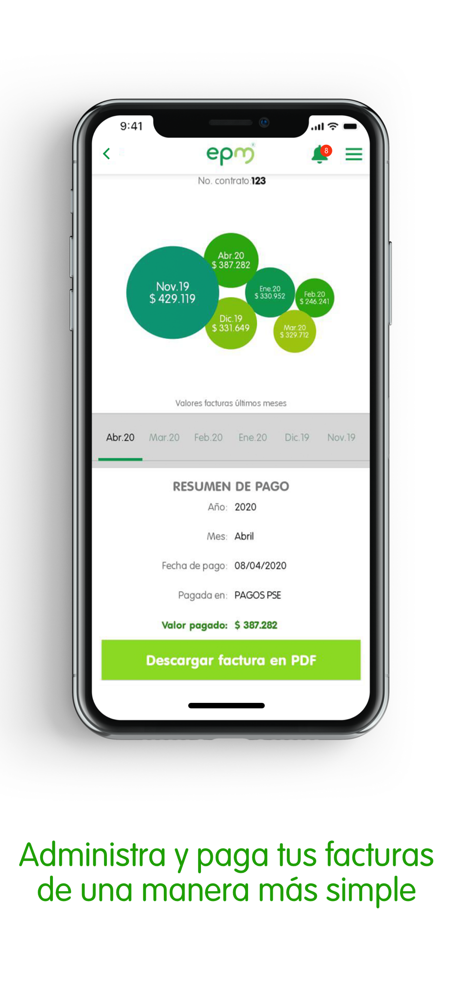 - Pagar y consultar tu factura en línea, además, ver históricos de pagos y consumos.