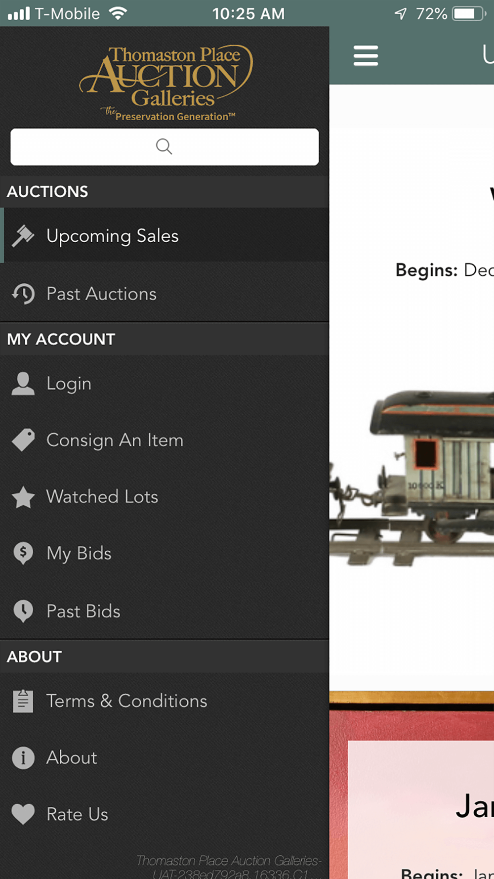 The Thomaston App empowers you to browse the fine art, furniture, porcelain, china, pottery, lamps, oriental rugs, mirrors, books & ephemera, coins & currency, silver, glass, folk art, antique toys, jewelry, quilts & samplers, marine items, sculpture, boats, automobiles, firearms, and much more.