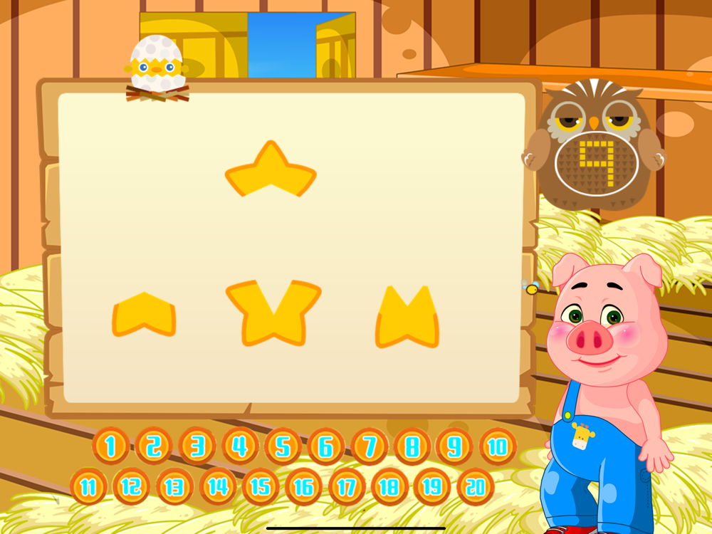 一款非常考验你动脑能力的小游戏噢,小朋友们,你们需要在屏幕下方,找一个合适的形状,与屏幕上方的图形,组成一个完整的图片,一起来试试吧。