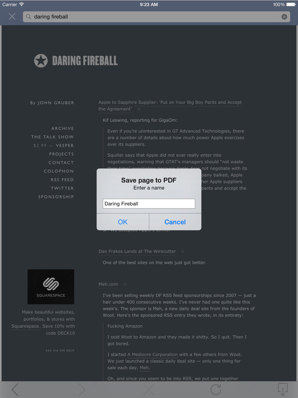 WebPDF is an application that lets you save a web page to a PDF. Once the PDF is saved, you can use the app to view it or share it.