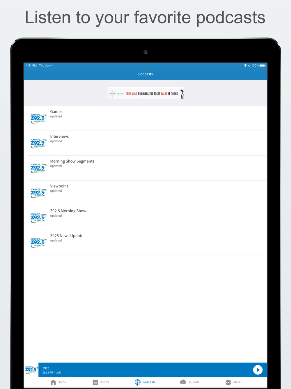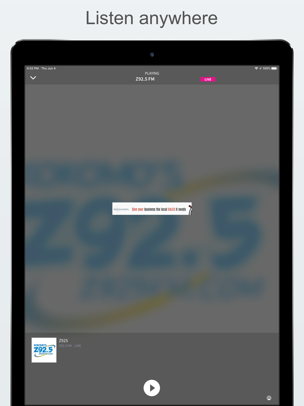 On the Kokomo's Z925 App you can listen live, vote for songs you want to hear, check for school delays and more!