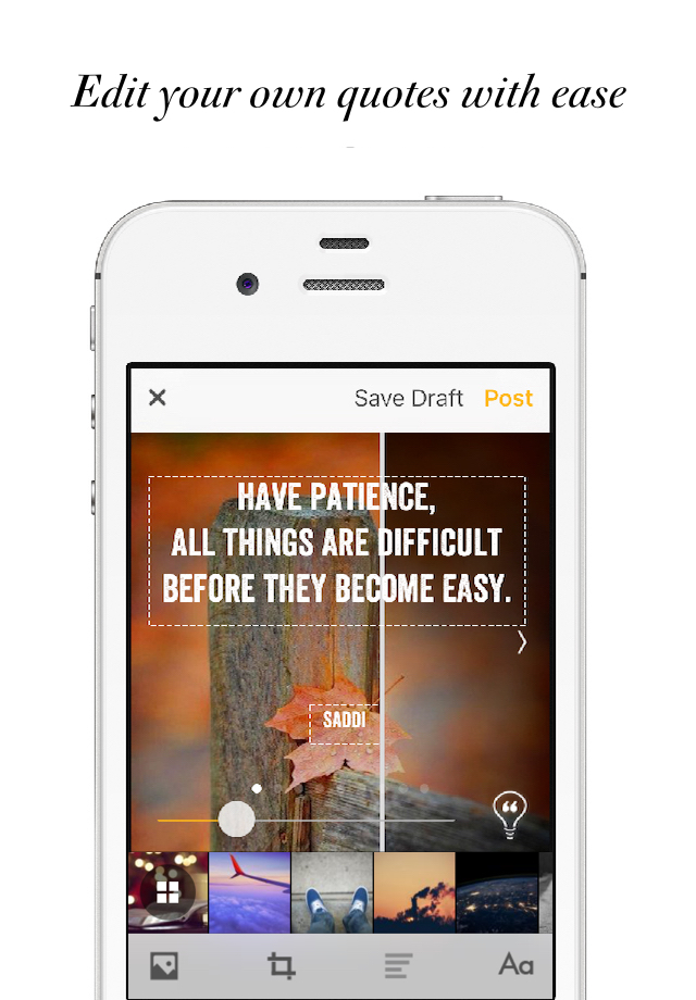 • Share your words with your family and friends within Quotify or via Facebook, Instagram, Twitter, etc.