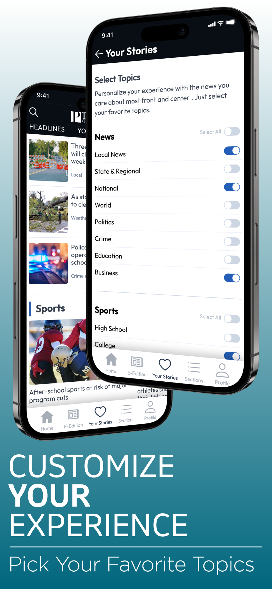 * Your Stories – personalize your experience by selecting the local news topics that matter most to you
