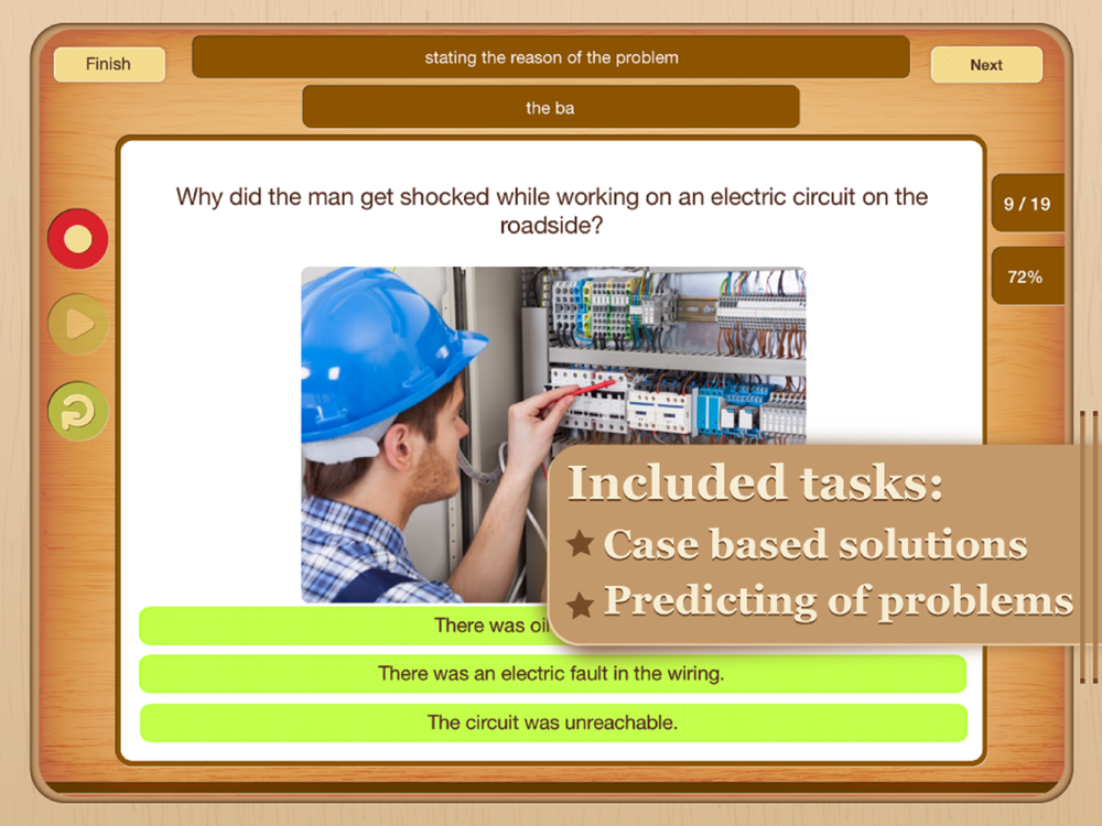 Problem solving is an important skill in our day-to-day activities, and while performing various tasks in this app such as problem-solving based on case scenarios and sentence completion with “if,” the user will be able to identify the problem, examine the possible options, and think creatively to seek strategic approaches to problem solving.