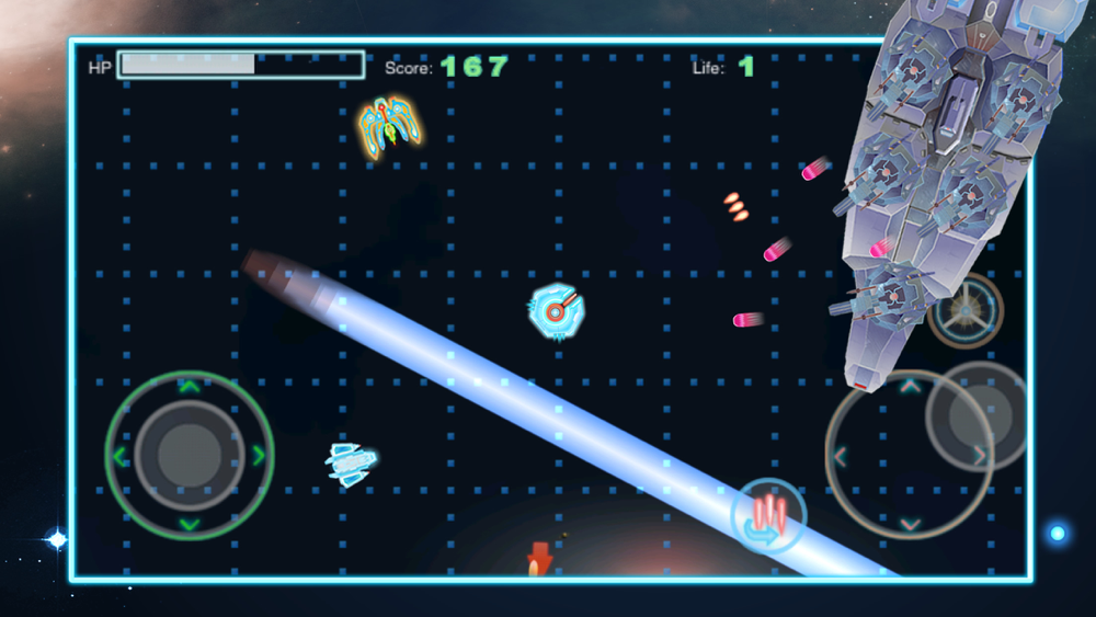 Combat with different types of enemy include battleship, space craft carrier, battle cruiser, destroyer, space fortress, shadow fighter, kinds of fighter ships, star planes and turret cannons. Fast reaction game AI. Survive through waves of enemies' spawn, and achieve a top rank in iPhone & iPad ( or Mac ). Use your strategy playing with weapons to defeat different enemies and boss.