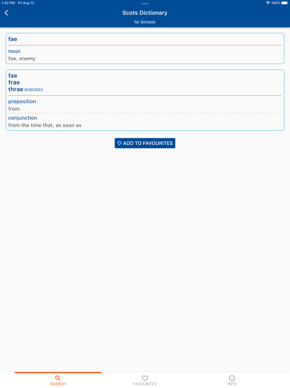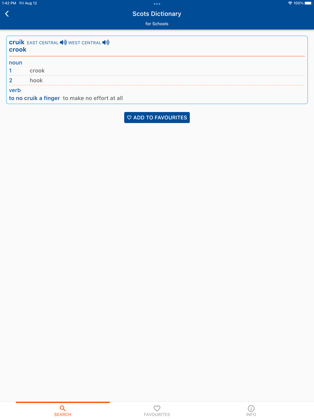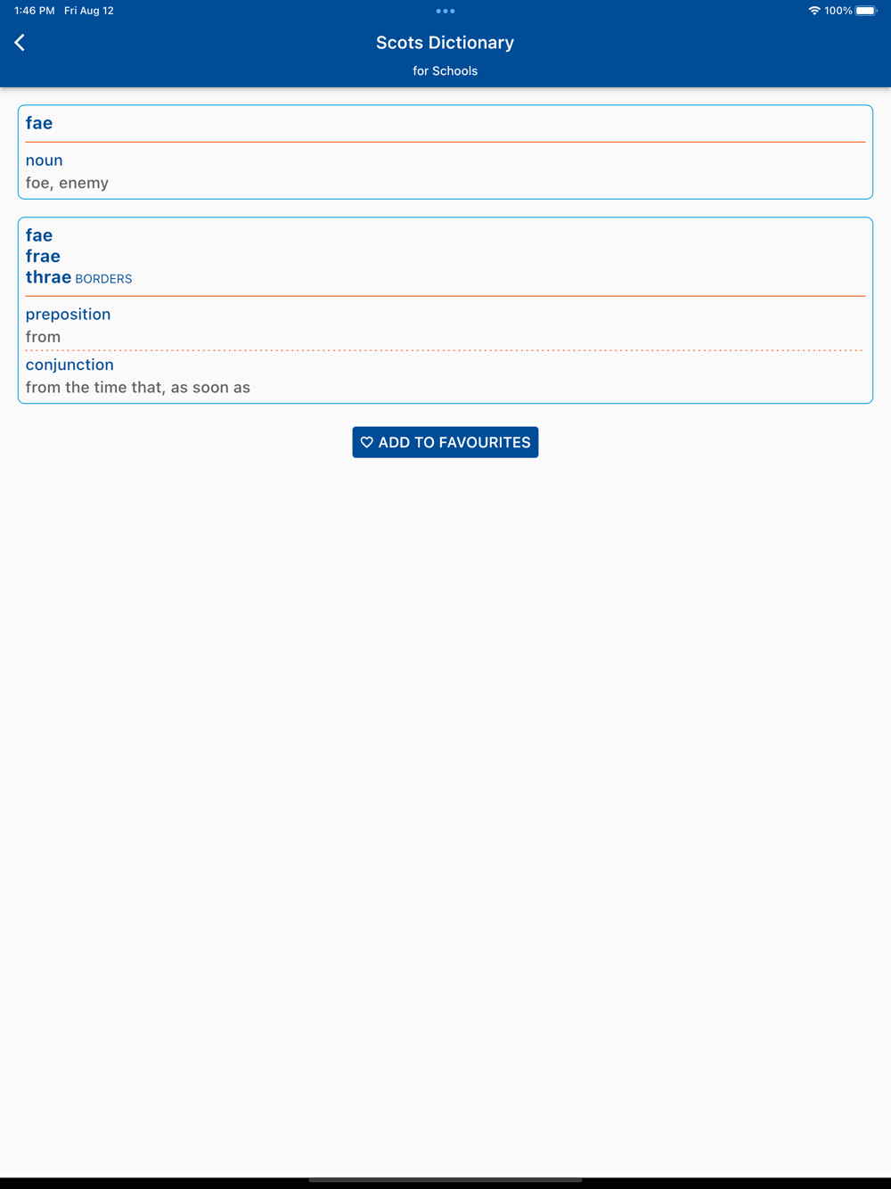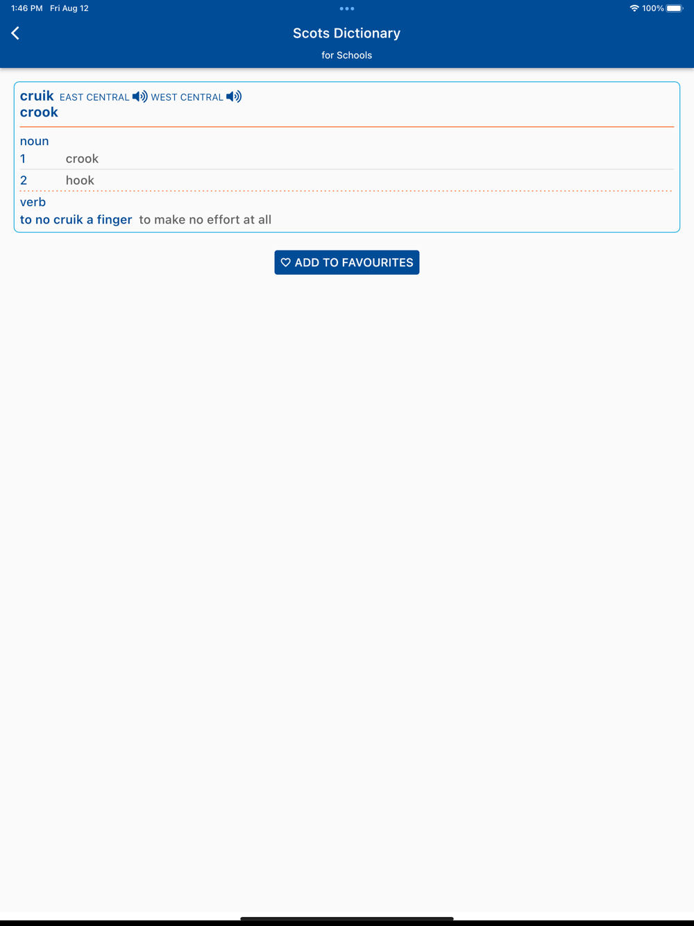 The favourites feature lets you build up a bank of words to read or practice at your leisure.