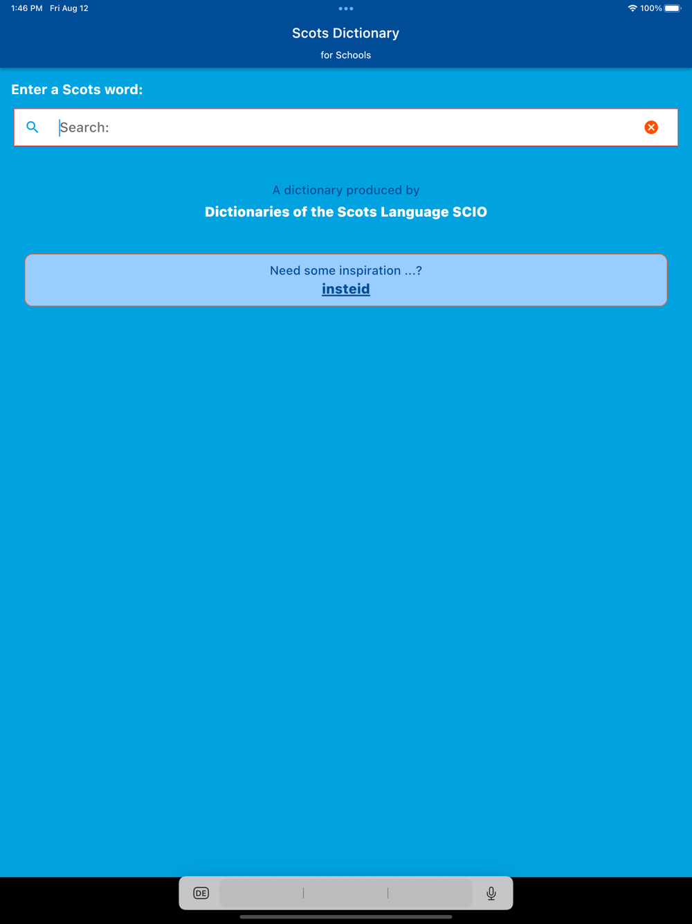 The Scots Dictionary for Schools is a free and friendly dictionary for use in the classroom or at home. Compiled by Dictionaries of the Scots Language SCIO, the nation’s authority on Scots, the Scots Dictionary for Schools provides meanings in English for around 9,500 Scots words and phrases. It also includes audio guides for around 600 words so you can hear their pronunciation as well.